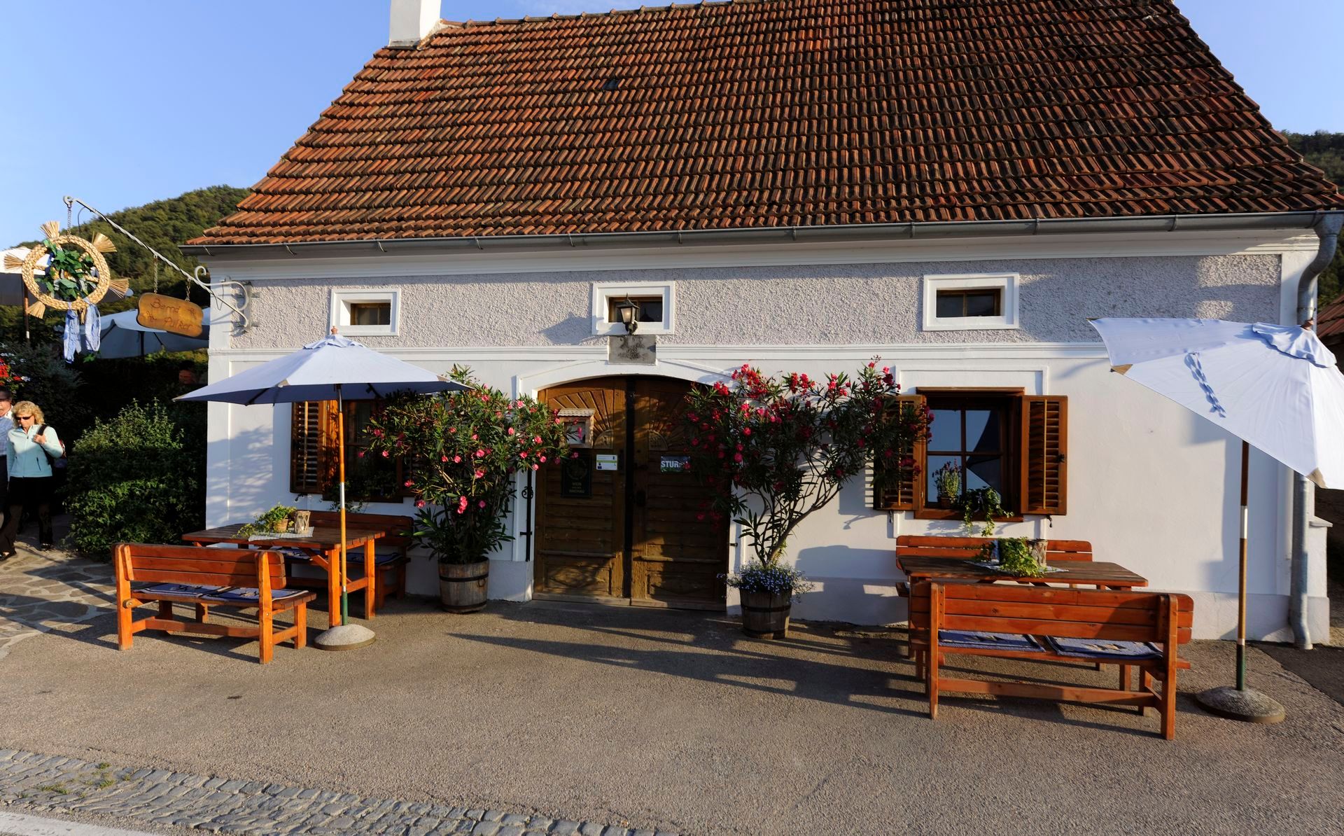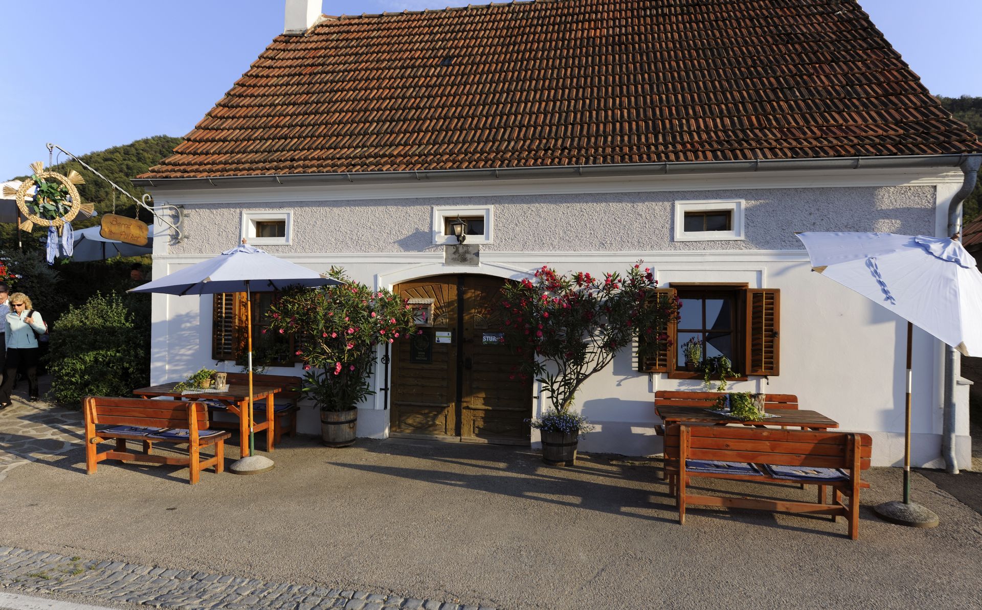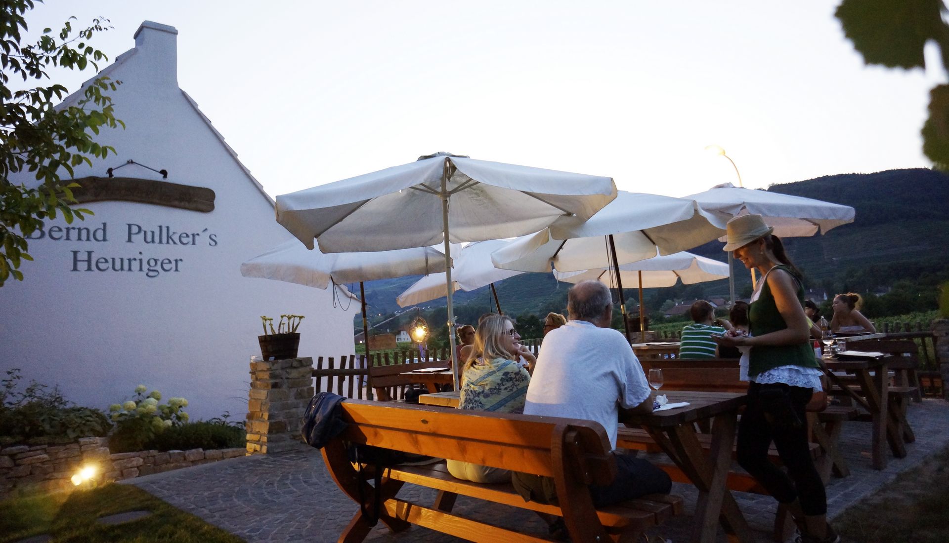 Am südlichen Donauufer im Naturidyll der Wachau, mit herrlichem Ausblick über den gewaltigen Strom, auf die berühmte Ried Achleiten, Weißenkirchen und die hoch oben gelegene Ruine Dürnstein, eingebettet inmitten von eigenen Weingärten, finden Sie unseren traditionellen Heurigen.
