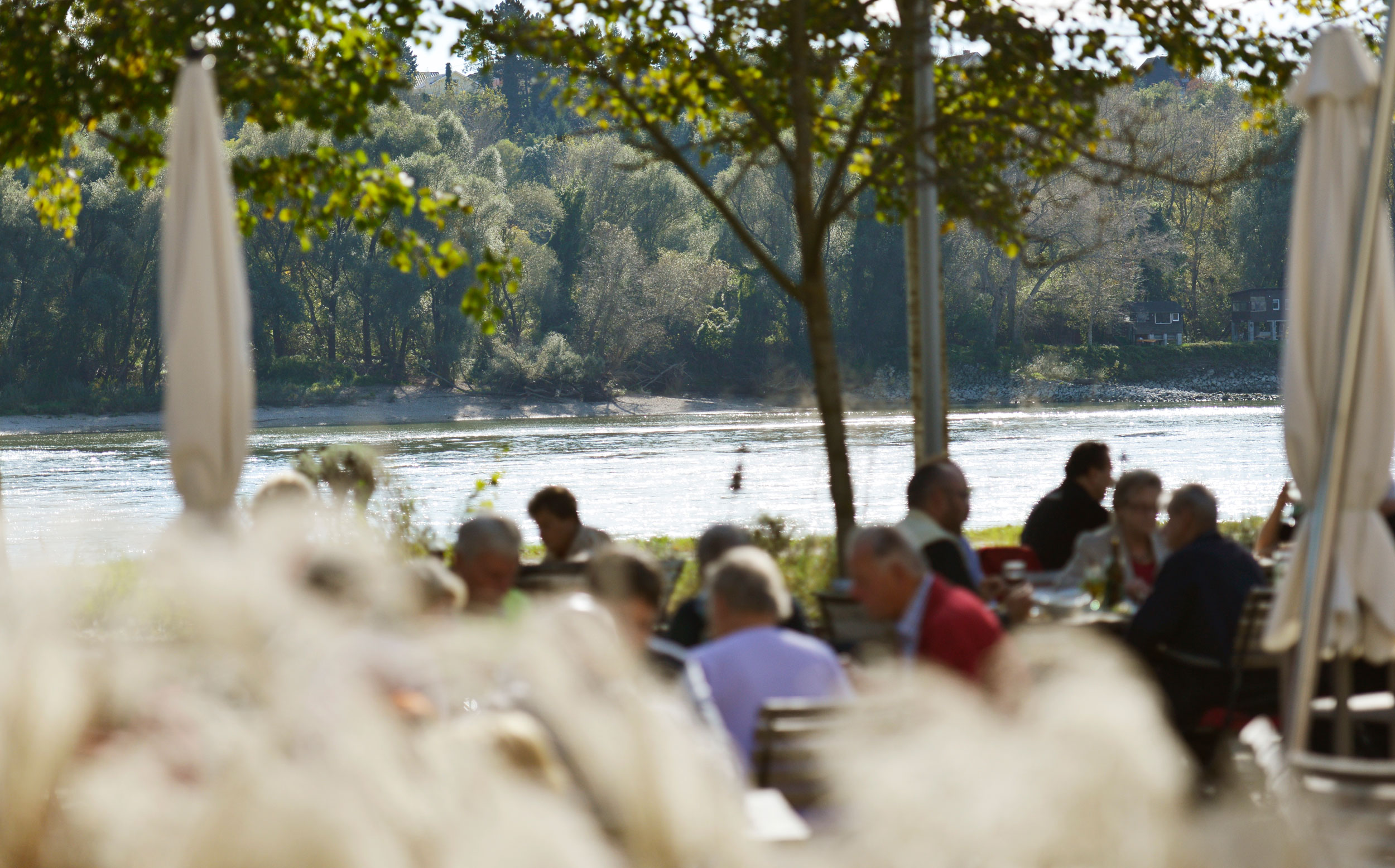 Im Sommer lädt der schattige Gastgarten mit Blick auf die Donau zum Verweilen ein. Wird es kühler, bieten große Panoramafenster auch drinnen beste Sicht auf die umliegende Natur.