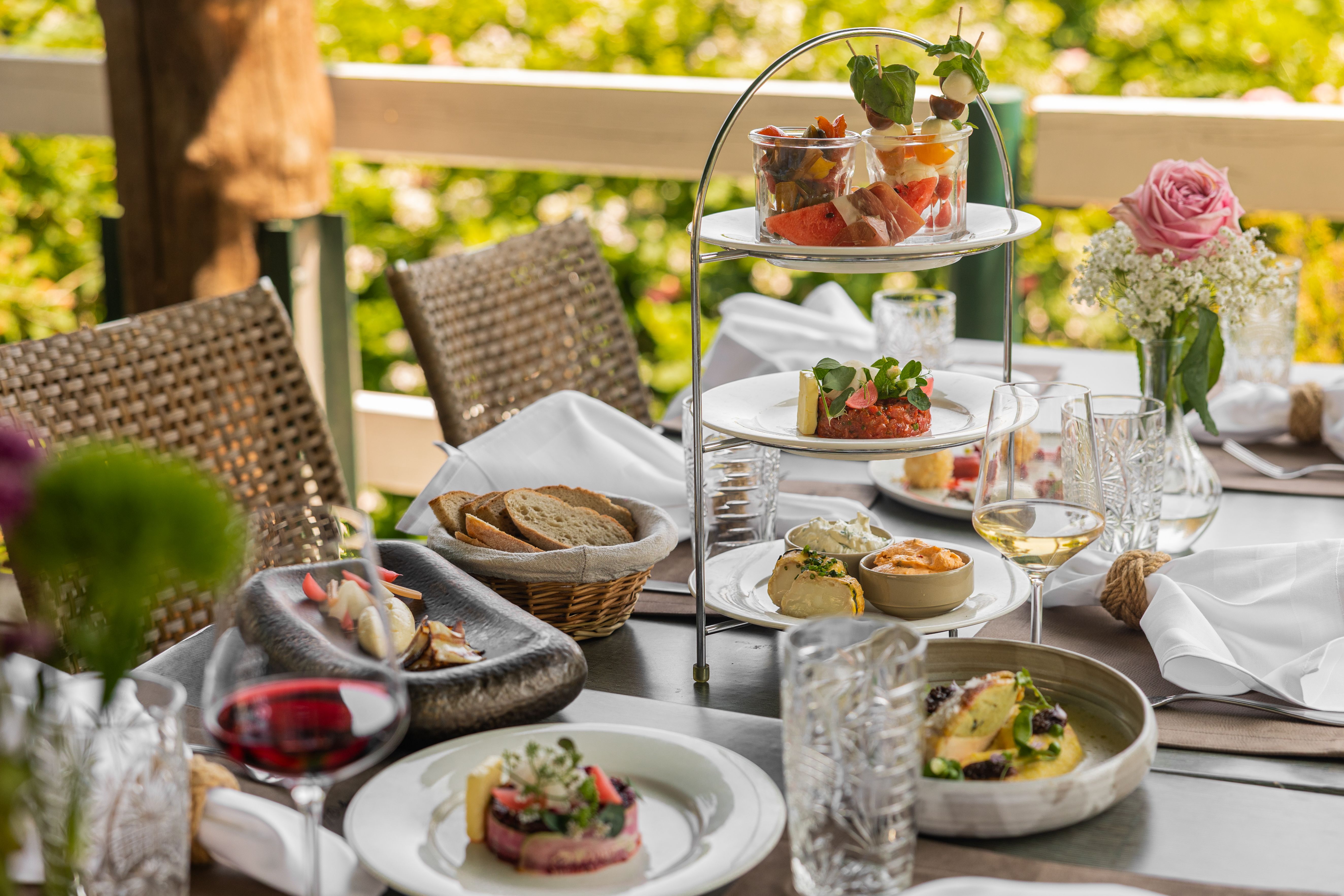 Die Speisekarte kombiniert klassische österreichische Gerichte mit modernem Twist – etwa Backhendl, Richardhofschnitzel, oder vegetarisches Umami-Tartar. Für Wanderer gibt es eine eigene Karte mit stärkenden Schmankerln wie getrüffelten Wildpilzen auf Sauerteigbrot oder hausgemachten Mohnnudeln.