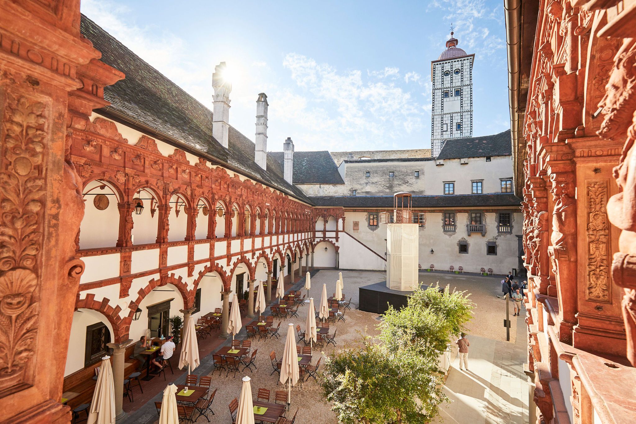 Ausstellung und Restaurant sind auf der Schallaburg eine Einheit: im Gastgarten inmitten des schönsten Terrakottenhofes nördlich der Alpen lässt sich bei traditionell österreichischer Küche mit saisonalen Schmankerln, Mehlspeisen und Eiskreationen die einzigartige Atmosphäre genießen.