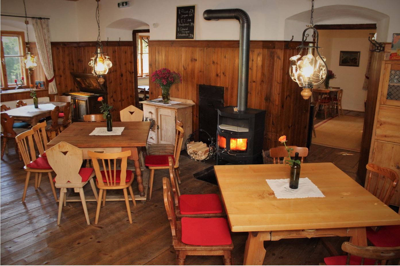 Die Küche zeichnet sich vor allem durch eine gutbürgerliche, hausgemachte Speise- und Jausenkarte mit Produkten aus der Region aus. Bis zu 60 Personen haben in Schank- und Gastzimmern Platz.