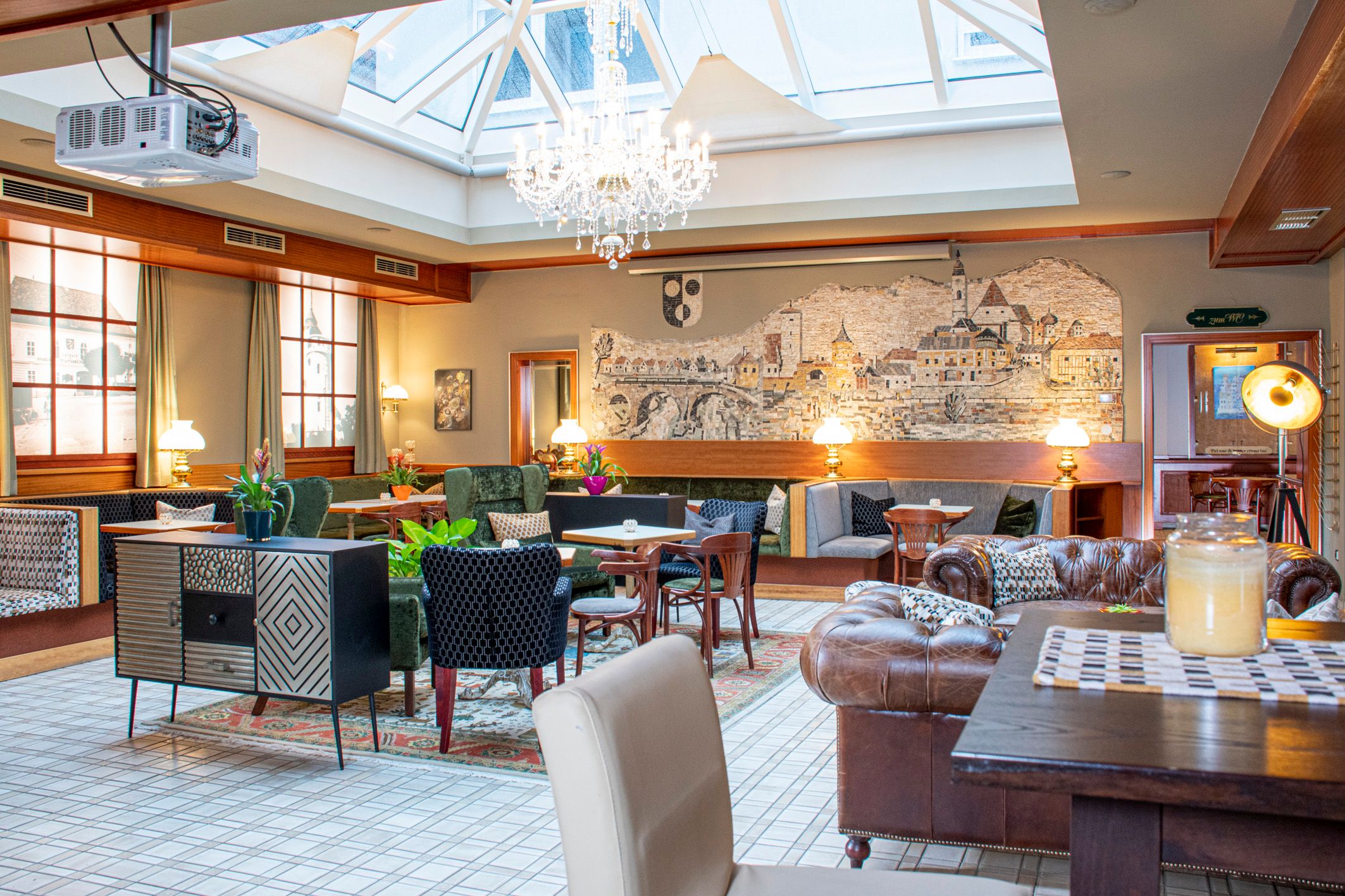 Der Tag startet im sciBBess mit einem vielfältigen Frühstücksangebot, mittags wird für die Gäste frisch gekocht, nachmittags können Sie zum Kaffee in Barista-Qualität hausgemachte Mehlspeisen genießen und abends verwandelt sich das sciBBess in eine gemütliche Lounge. Lassen Sie den Tag ausklingen bei einem entspannten Drink und genießen Sie einen kleinen oder größeren Snack aus dem Barfood-Angebot. Außerdem beherbergt das sciBBess einen ganz besonderen Schatz: der bekannte Künstler Prof. Sepp Mayrhuber hat Scheibbs als beeindruckendes Wand-Mosaik verewigt. Und auch der erste Stadtplan von Scheibbs kann als riesige Wandtapete bewundert werden.