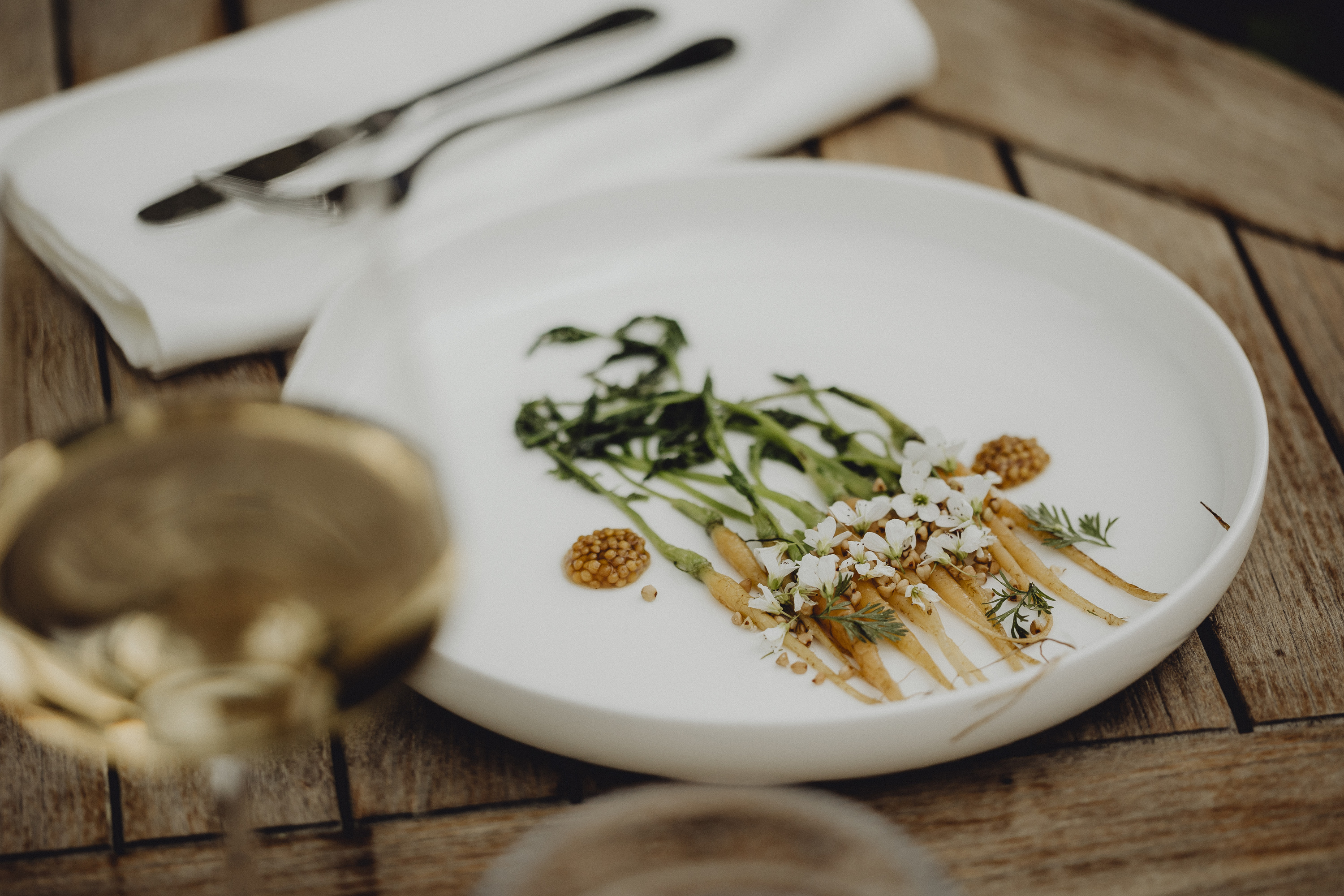 Aufgetischt wird, was die Bucklige Welt zu bieten hat. Je regionaler, desto besser. Im Wirtshaus Triad in Krumbach können Gäste die Reise regionaler Produkte live miterleben. Wurzelgemüse, Paradeiser & Co wandern direkt aus dem Kräuter- und Gemüsegarten in den Kochtopf. Bei einem Platz am Chef‘s Table in der Küche von Veronika und Uwe Machreich darf und soll auf das Handwerk geachtet werden. Offenbart wird tatsächlich Großes: Das in der Konsistenz perfekt gekochte Kalbsrahmbeuschel wird mit Serviettenknödeln angerichtet. Die Fleischgerichte punkten mit hoher Produktqualität, das gilt auch für das mustergültige Backhendl. Als süß-säuerlicher Abschluss erfrischt das Zitronengras-Sorbet mit Himbeeren. Die Küchenlinie des Haubenlokals lässt sich nicht kategorisieren. Zu offen, zu kreativ geht es in der Küche zu Werke.