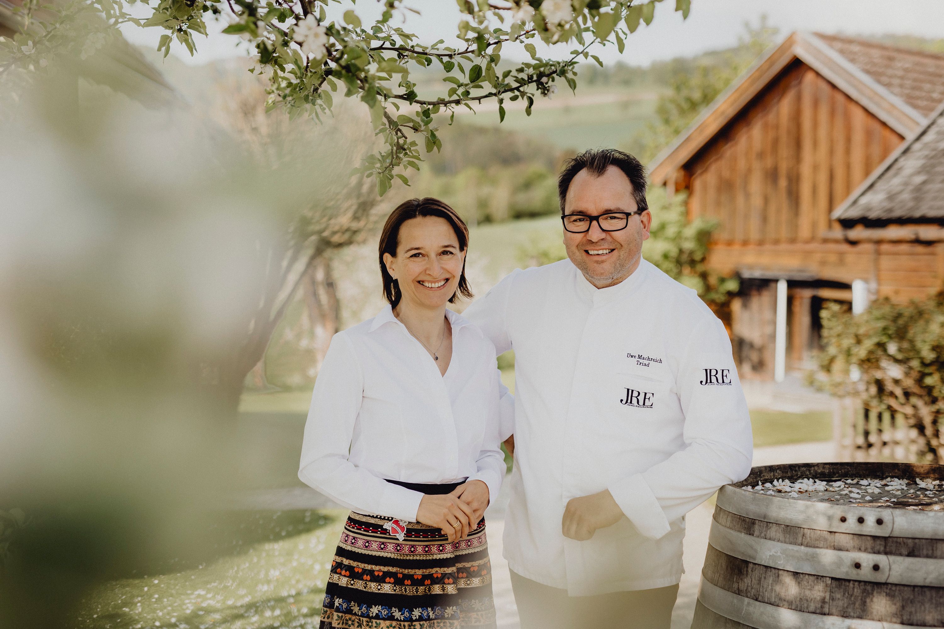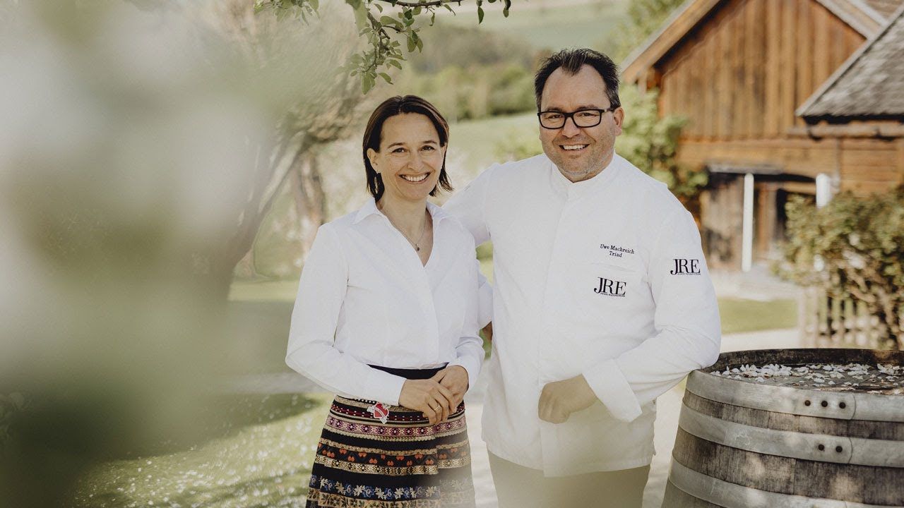 Seit seiner Gründung im Jahr 2004 hat sich das Triad stets weiterentwickelt. Aus einem ehemaligen Bauernhof entstand ein Restaurant mit verträumtem Gastgarten und Naturteich. Mit der Zeit kamen ein kleiner Hofladen und eine originell gestaltete Nächtigungsmöglichkeit – das Wiener Alpen Bett – hinzu. Der Ausblick ist phänomenal. Der Beiname „Bett in der Wies’n“ könnte treffender nicht sein. Die Rollen im Wirtshaus sind klar verteilt. Veronika Machreich ist Patronin des Hauses und im engen Austausch mit den Gästen. Uwe geht seiner Berufung in der Küche nach. Serviert werden die österreichischen Klassiker und mehrgängigen Überraschungsmenüs in einem stimmigen Ambiente. In tieferer Höhenlage befindet sich der Weinkeller, der eine erlesene Rebsorten-Auswahl bietet.
