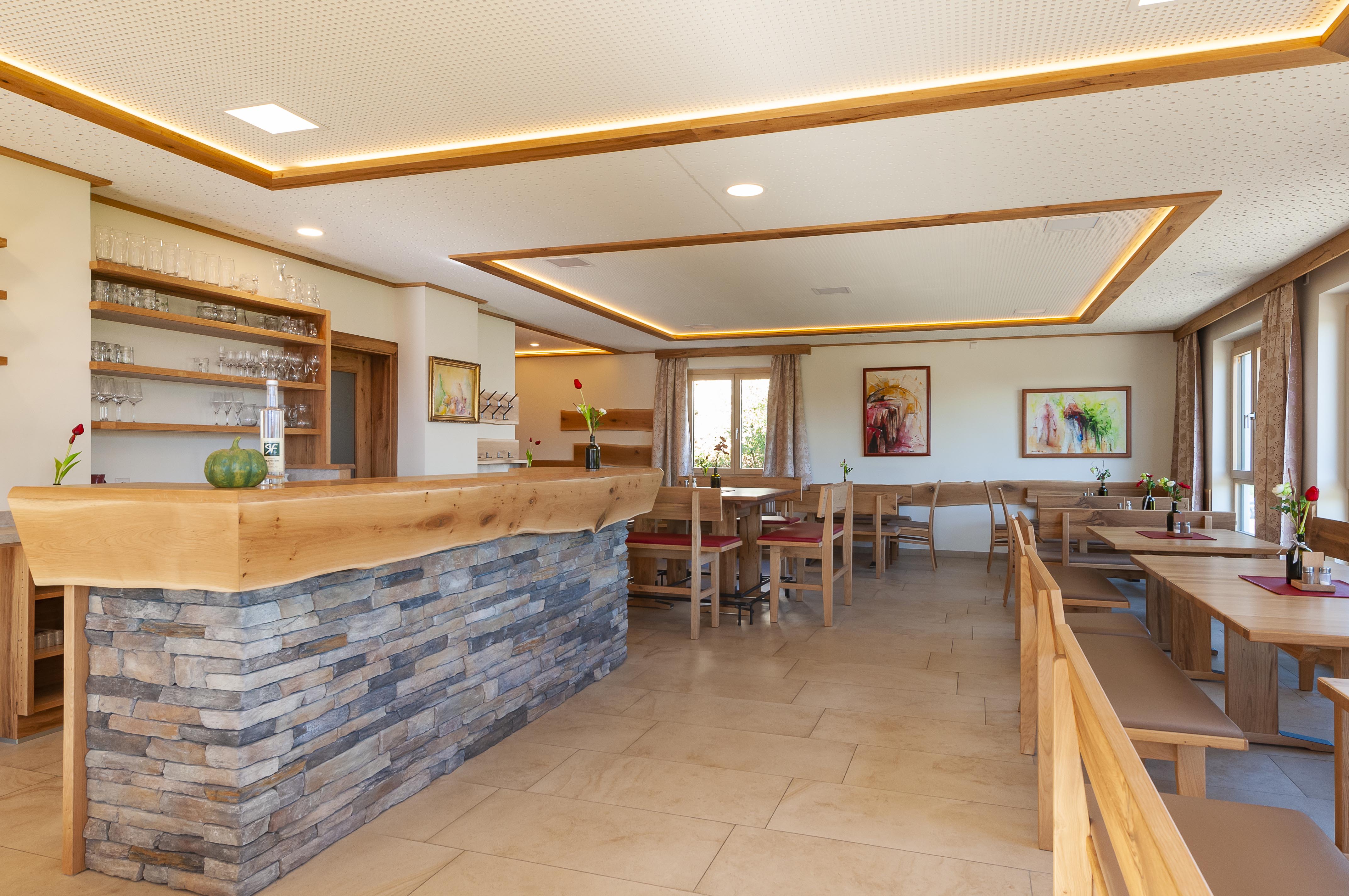 Ins Schwärmen gerät man endgültig beim ersten Achterl Steinfeder, Federspiel oder Smaragd und beim Durchforsten der Speisekarte. Was soll man nur nehmen? Bio-Schafkäse, Forellenfilet, Selchwaren aus der hauseigenen Selch, Wildspezialitäten? Worauf auch immer die Wahl fällt: Ein Genuss ist es in jedem Fall.