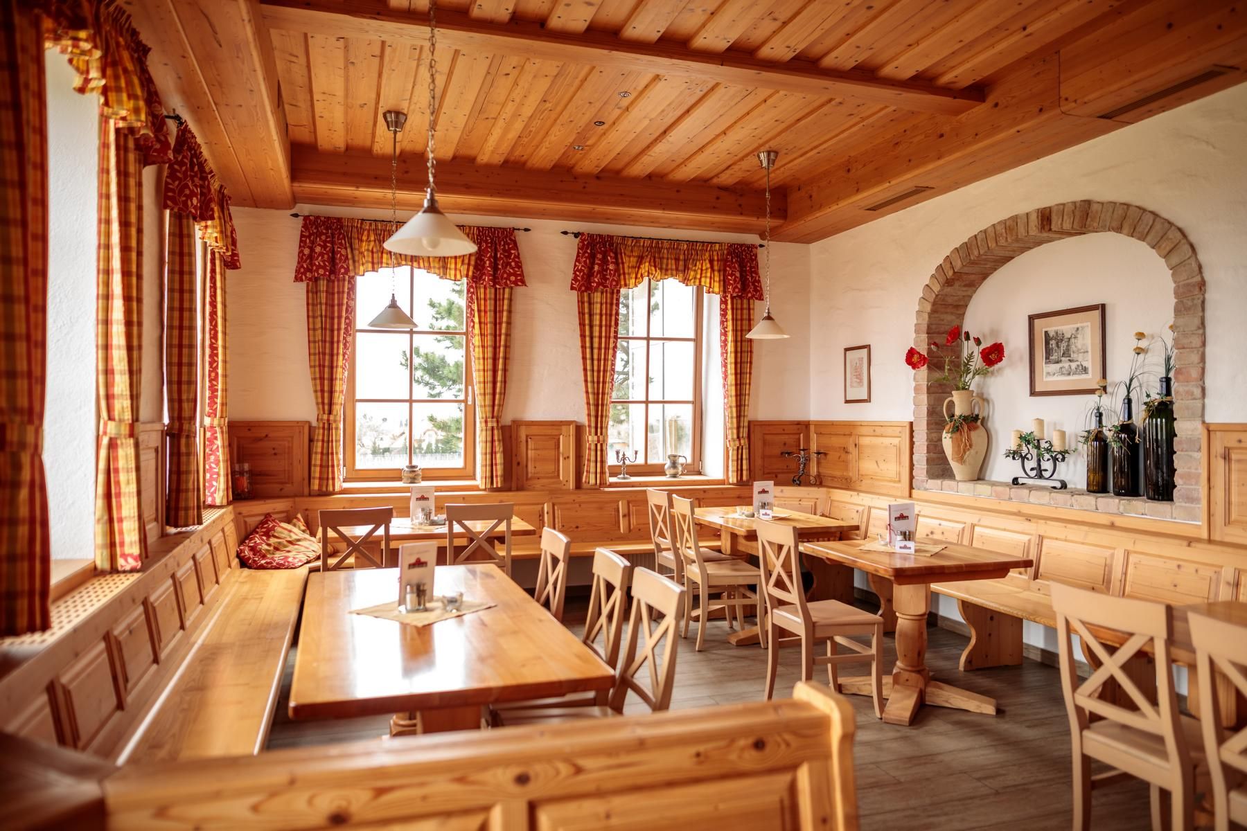 Im Obergeschoss bietet unser "Panoramalokal" den idealen Rahmen für Hochzeiten, Geburtstagsfeiern, etc. Je nach Bedarf finden hier zwischen 50 und 130 Personen Platz. Ein atemberaubender Ausblick in das Wiener Becken ist garantiert.