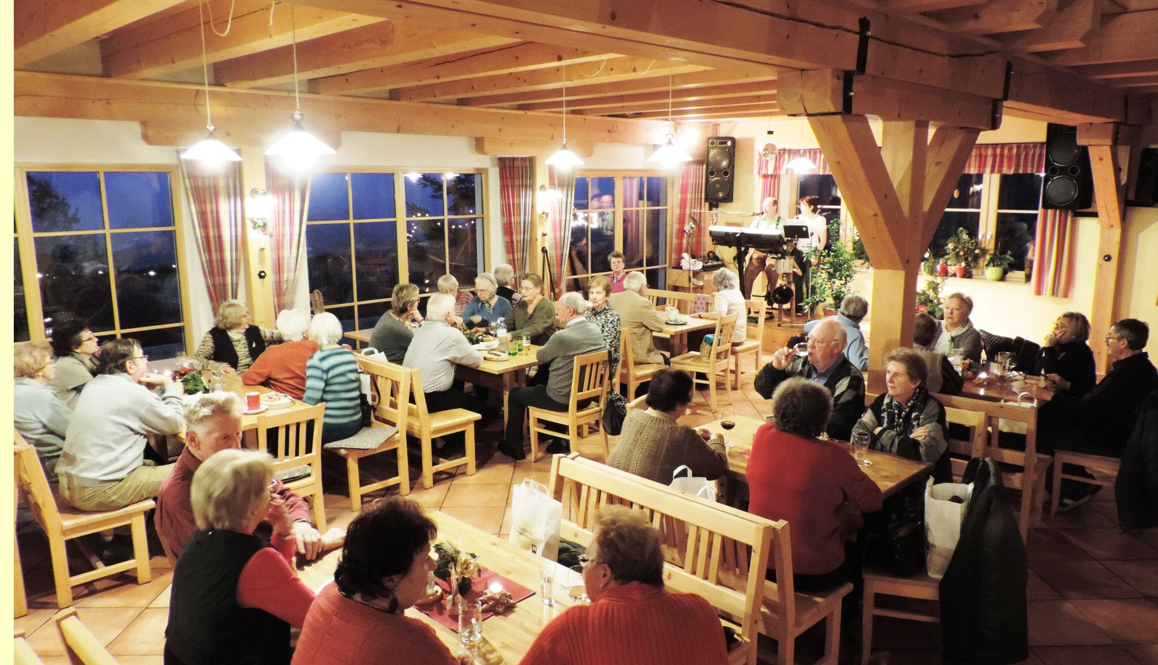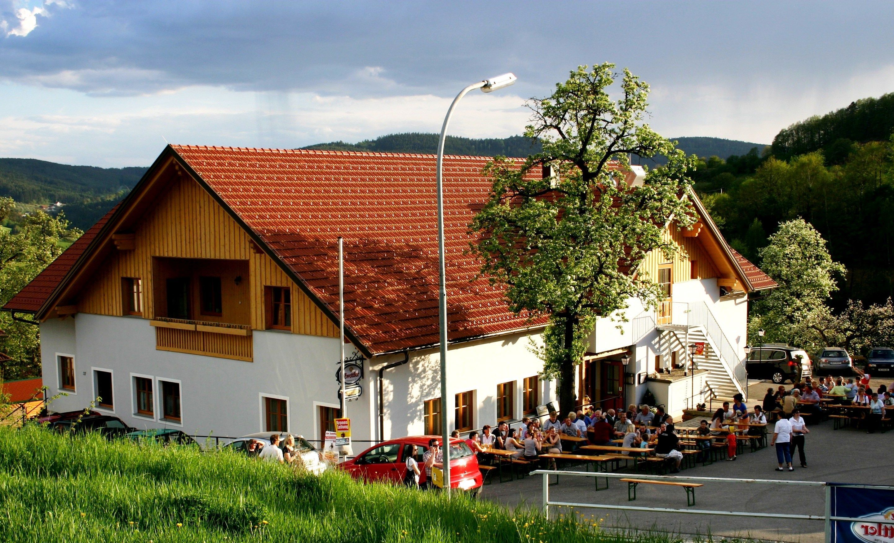Eine Kinderspielecke, Zwergziegen, und eine Wandermöglichkeit zu den geologischen Besonderheiten der Region (Kalkofen) sowie die musikalische Umrahmung durch die singenden Wirtsleute, runden das Angebot ab. Von der Terasse können die Gäste einen herrlichen Ausblick genießen.