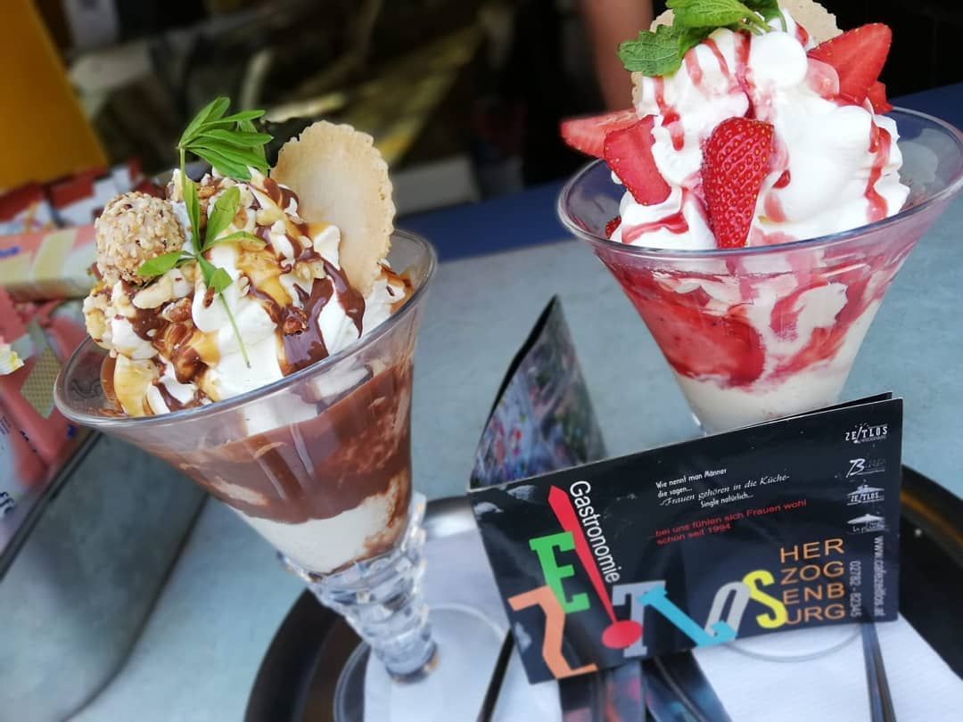 Wir produzieren über 60 Eissorten - da der Platz in der Vitrine auf 32 Sorten begrenzt ist, gibt es neben den klassischen Angeboten ca. 12-15 Eisspezialitäten in der Vitrine welche wir nach Verfügbarkeit laufend wechseln.
