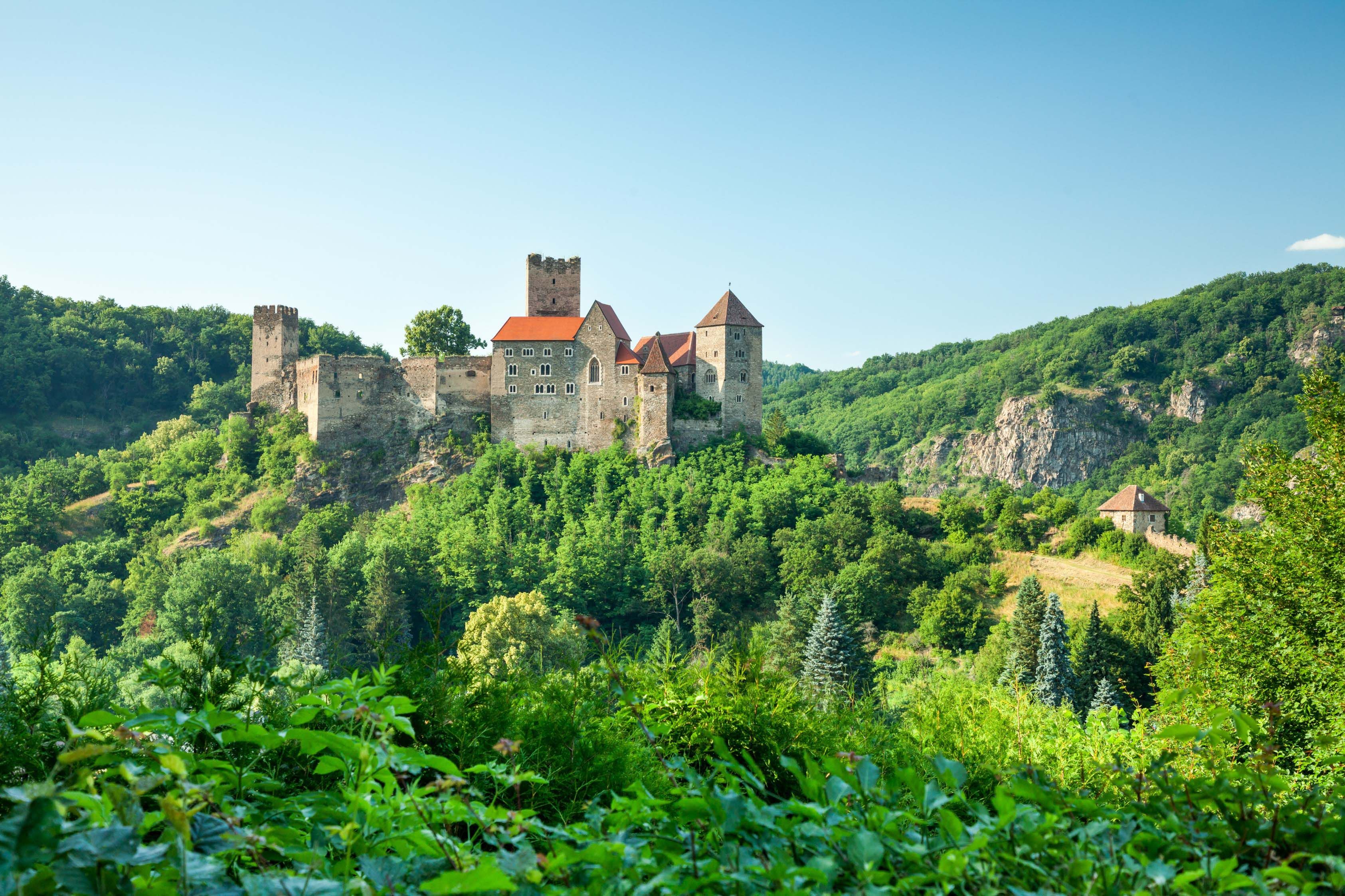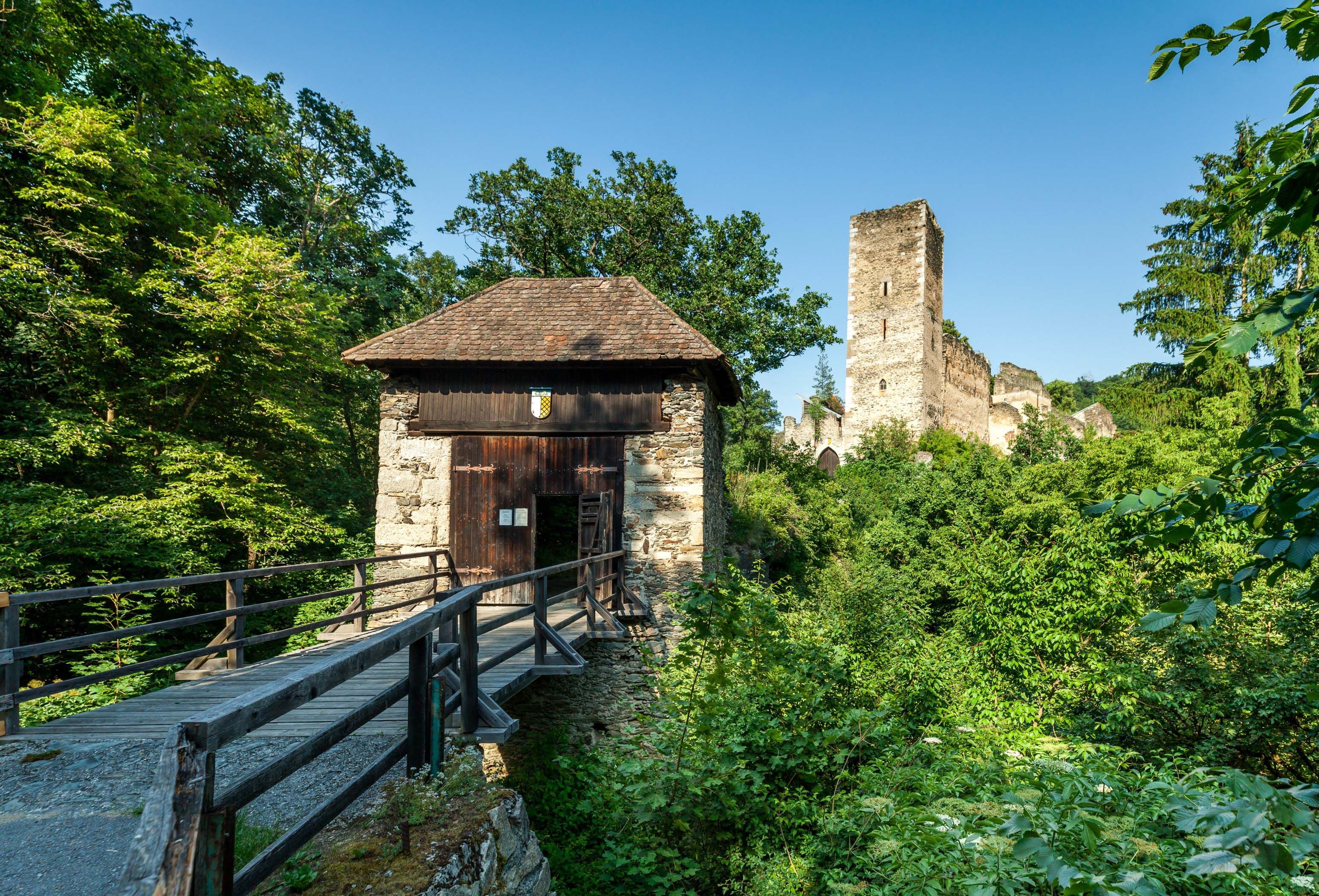 Hardegg, die kleinste Stadt Österreichs, liegt im tiefen, gewundenen Tal des österreich-tschechischen Grenzflusses Thaya. Inmitten ausgedehnter Wälder, auf hohem Felsrücken, ragt über der Stadt die mächtige Ritterburg mit vier Türmen empor.