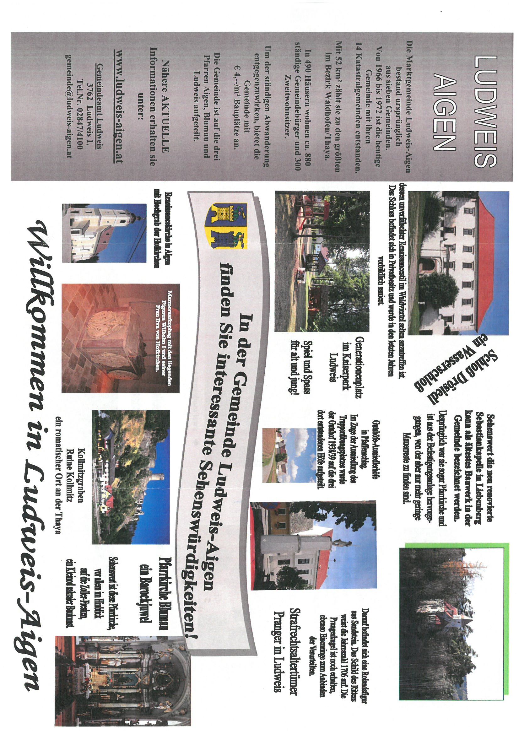 Die Marktgemeinde Ludweis-Aigen im Bezirk Waidhofen an der Thaya liegt im nördlichen Waldviertel. Sie umfasst die Katastralgemeinden Aigen, Blumau an der Wild, Diemschlag, Drösiedl, Kollmitzgraben, Liebenberg, Ludweis und Oedt an der Wild sowie Pfaffenschlag, Radessen, Radl, Sauggern, Seebs und Tröbings.