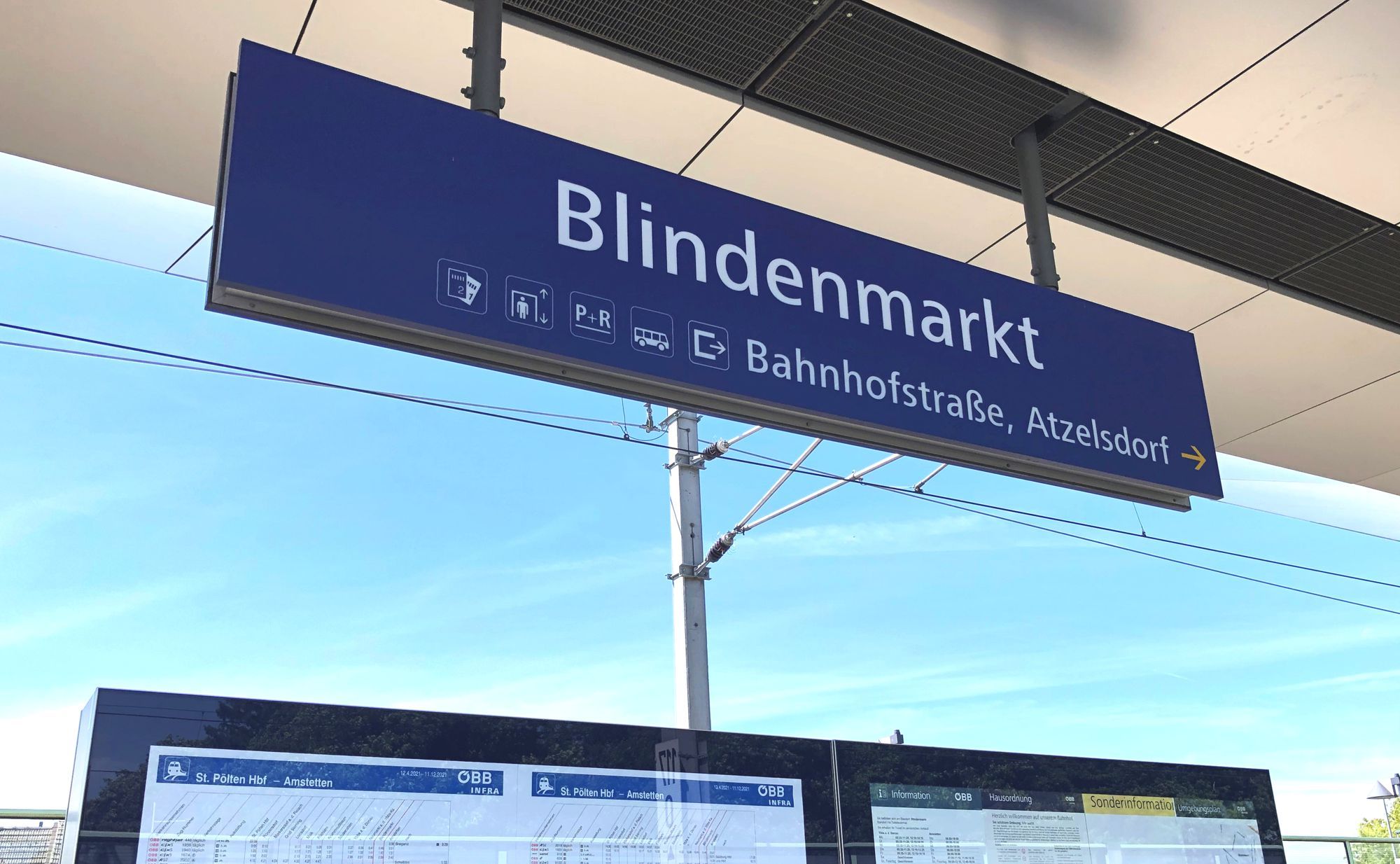 Der Bahnhof Blindenmarkt befindet sich inmitten der gleichnamigen Marktgemeinde im Bezirk Melk. An der unbesetzten Haltestelle wurde im Warteraum ein Ticketautomat eingerichtet, somit ist durchgehend ein Fahrkartenerwerb möglich.