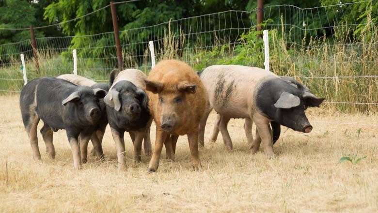 Die Familie Hubicek züchtet Mangaliza Schweine, die sich durch ihre krausen Borsten und ihrer Zutraulichkeit auszeichnen und Schwäbisch Hällische Landschweine, die aufgrund ihrer schwarzen Köpfe und schwarzen Hinterteile leicht zu erkennen sind.