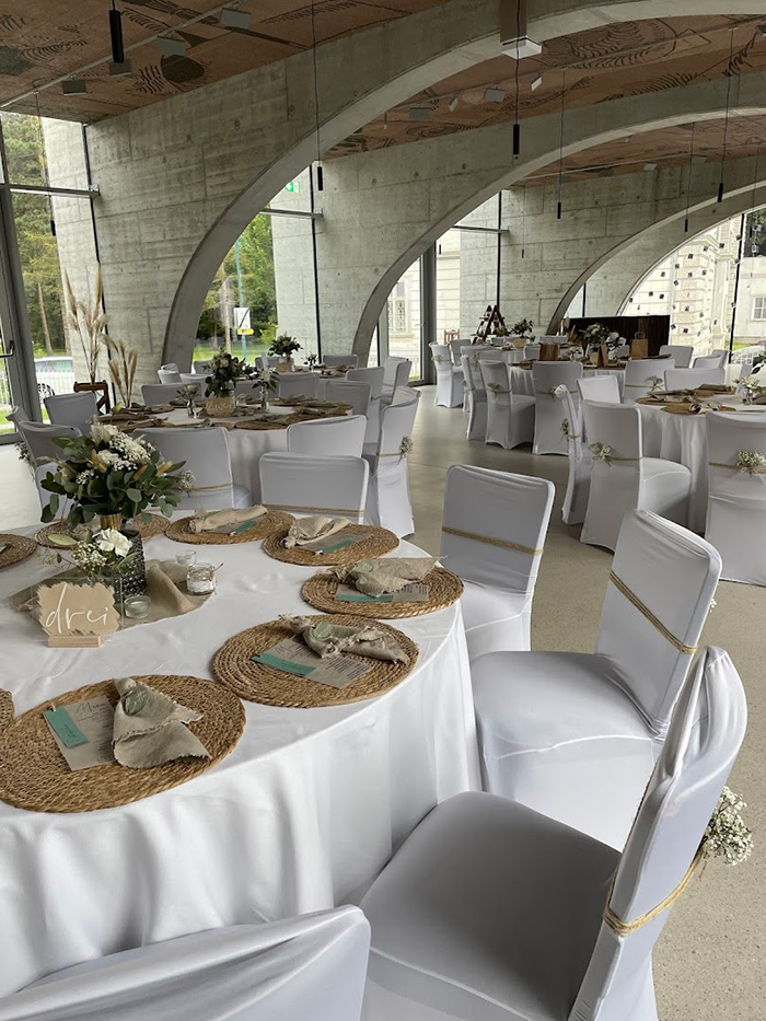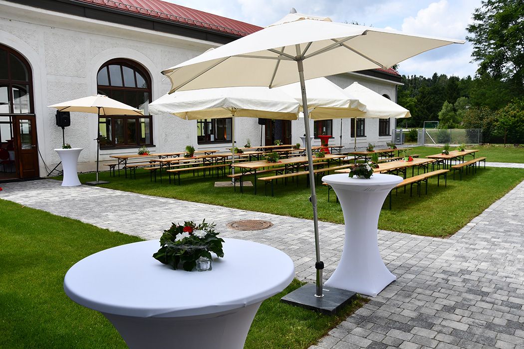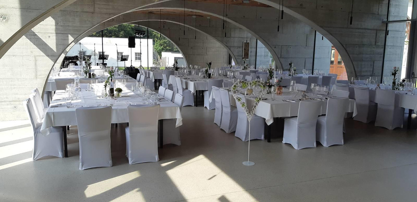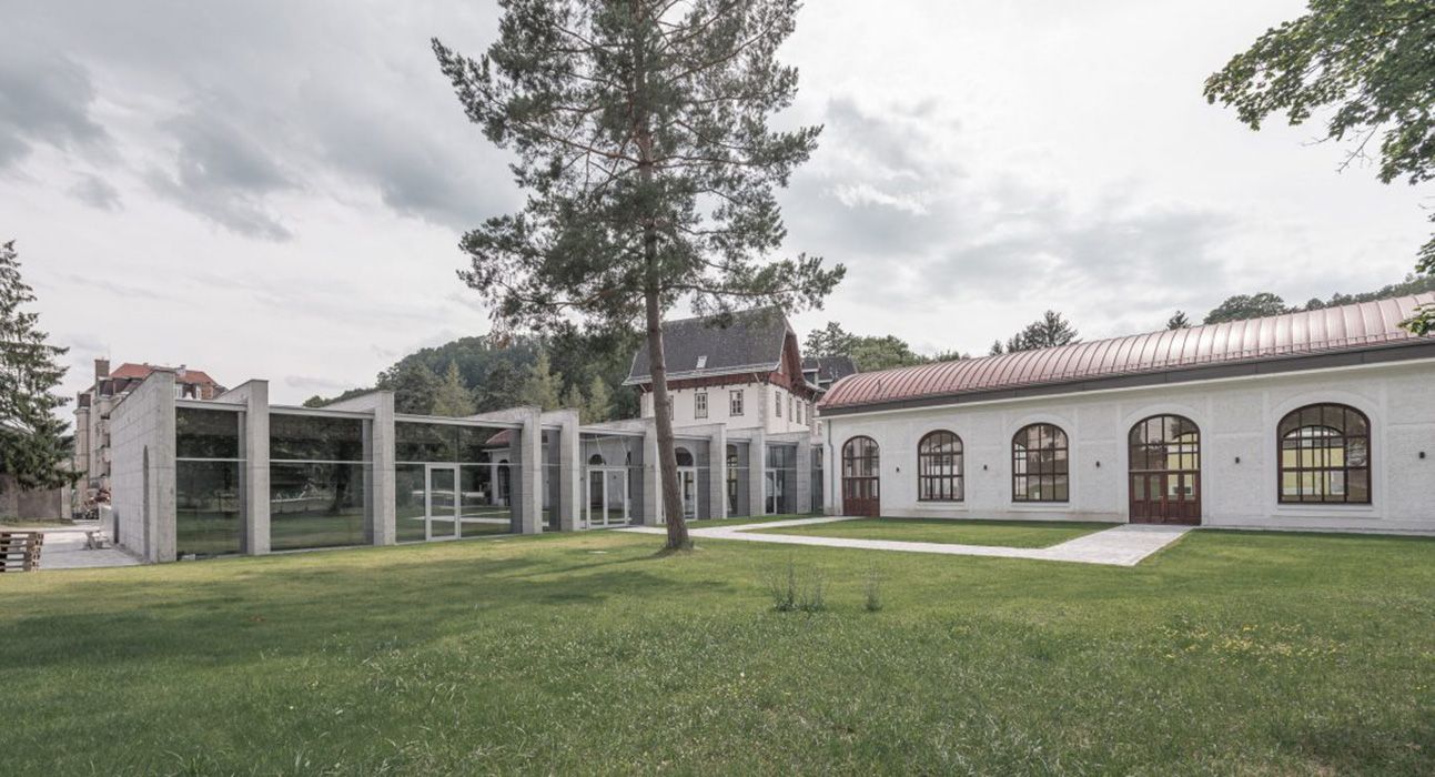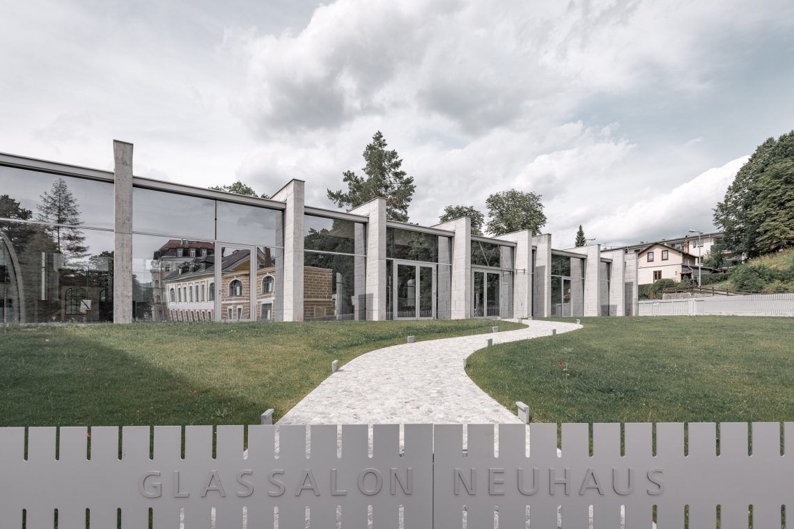 Ausgezeichnet mit dem Niederösterreichischen Baupreis 2020, bietet der Glassalon Neuhaus das perfekte Ambiente für Ihre Veranstaltung. Modernes Design in Verbindung mit historischem Bestand verleiht dem Gebäude besonderen Flair: Die großzügigen Korbbogenfenster im Originaltrakt aus dem Jahr 1913 finden sich in den bogenförmigen Stahlbetontragwerken des Zubaus wieder; dazwischen sorgen verspiegelte Glasfelder für luftige Helligkeit. Der angrenzende weitläufige Garten bietet ausreichend Platz für Feiern im Freien.