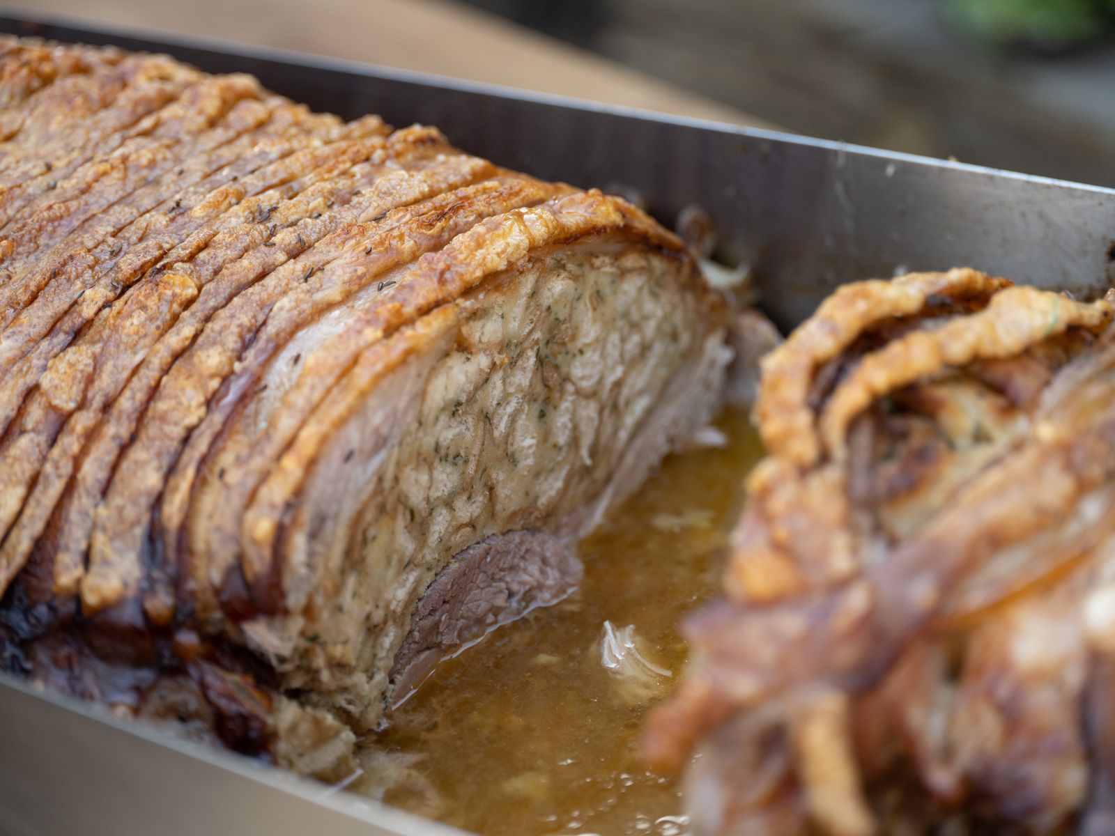 Die Zubereitung unserer köstlichen Spanferkel beginnt mit der Würzung. Als perfekt abgestimmte Beilage wird eine Semmelfülle im Bauch des Spanferkels mitgebraten. Auf Wunsch genießen Sie dazu selbstgemachten Krautsalat mit einer Marinade aus hofeigenem Rapsöl. Für die Semmelfülle und den Krautsalat werden ausschließlich Produkte aus unserer Region verwendet. Am Ende dürfen Sie sich auf eine goldbraune Schwarte, zartes Fleisch und köstlichen Bratensaft freuen.