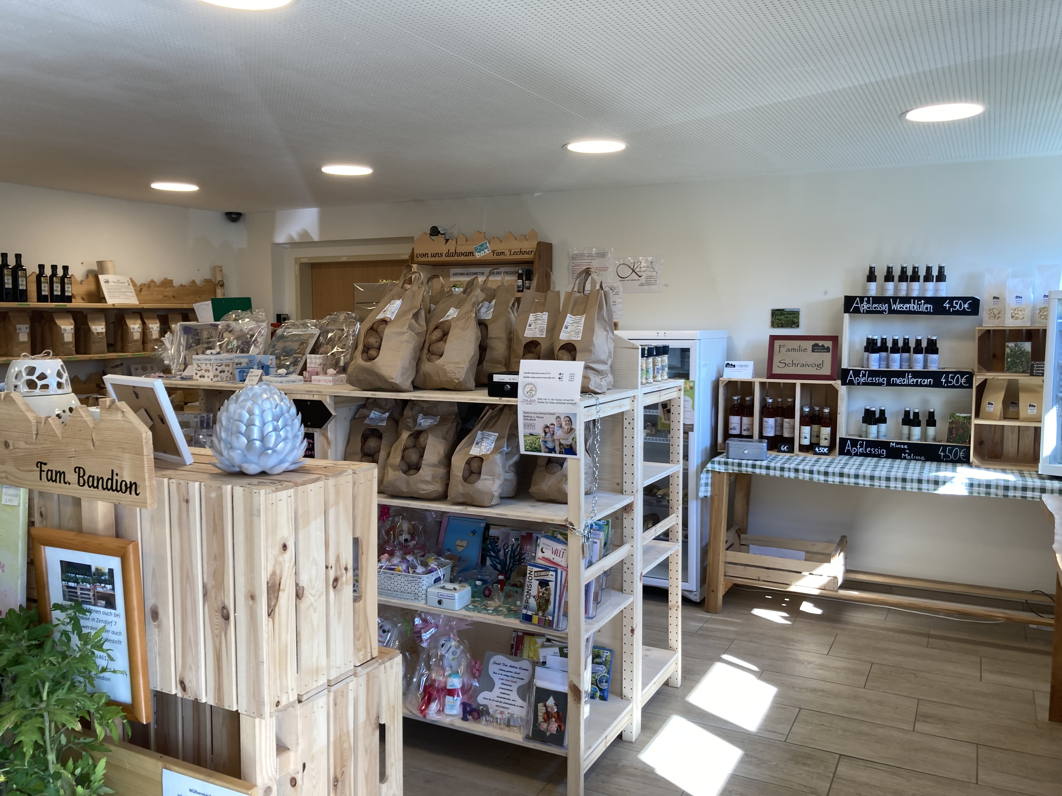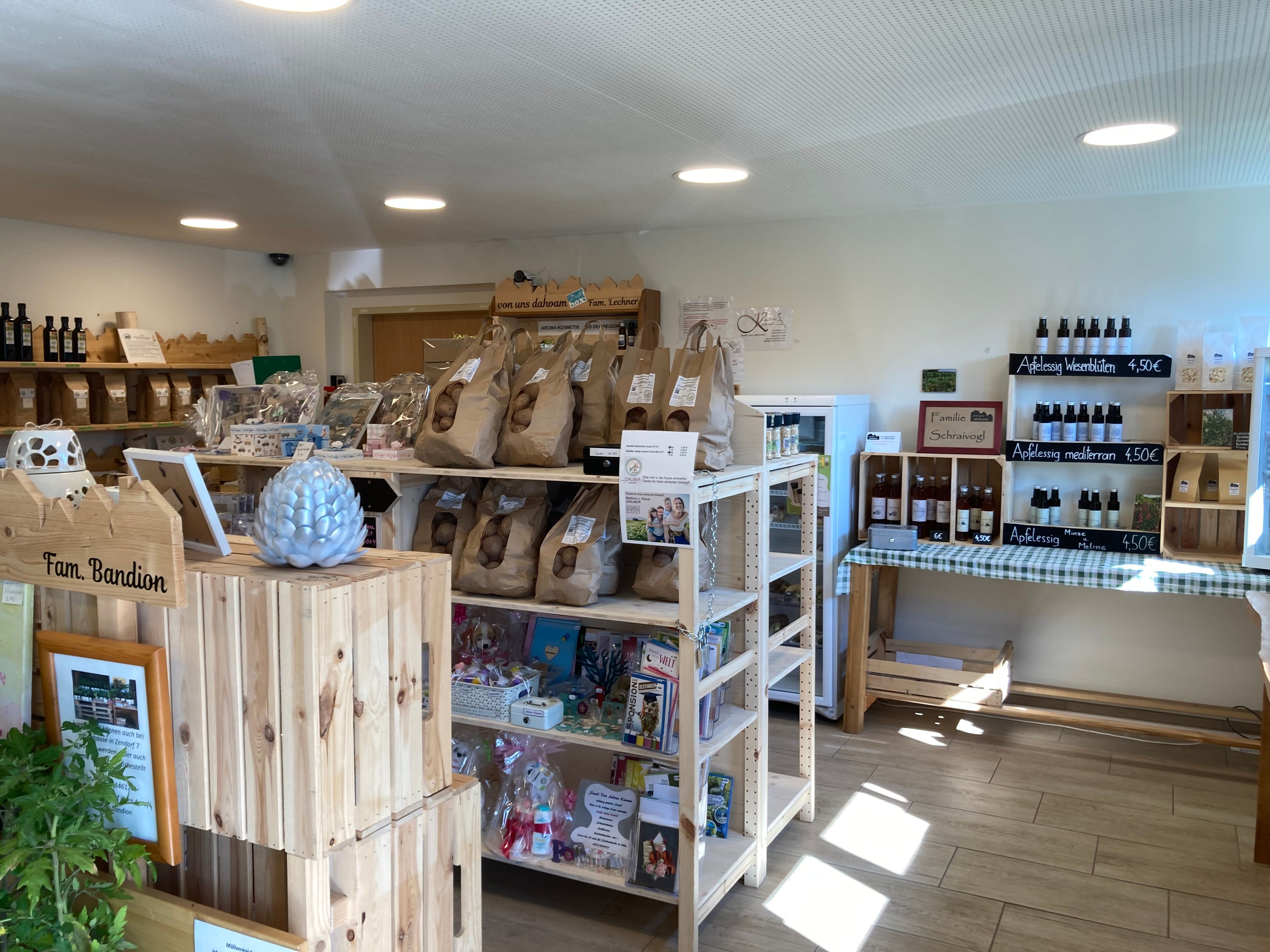 Der 2018 eröffnete Regionalladen „Von uns dahoam“ in Hafnerbach ist in der Volksschule untergebracht und täglich von 0 bis 24 Uhr geöffnet. Der gemütliche Selbstbedienungsladen bietet Produkte von 15 regionalen Erzeugern an. Die Palette reicht von Holzarbeiten über Körperpflegeprodukte bis hin zu Lebensmitteln in bester Qualität.