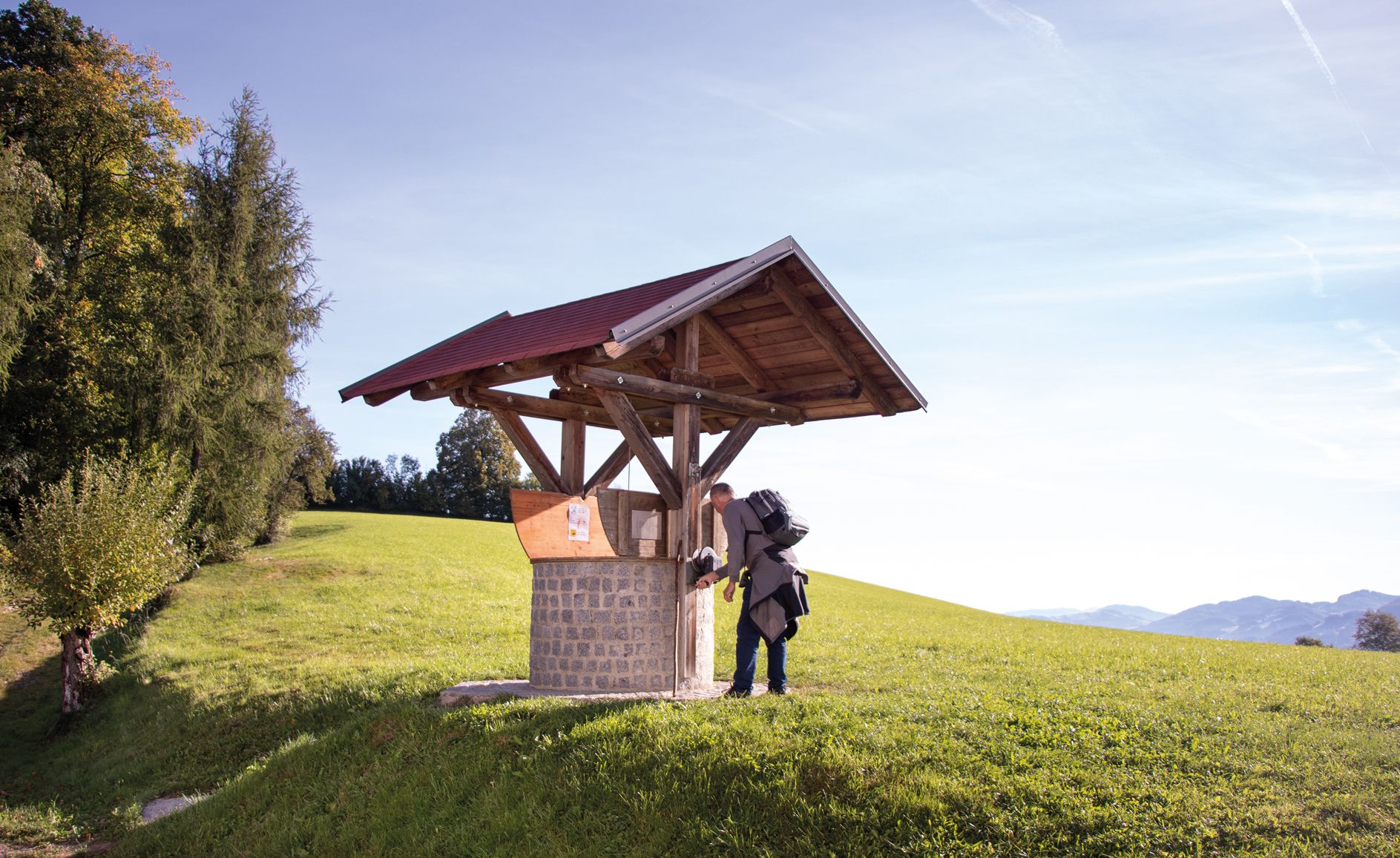 Der Römerbrunnen zwischen Kilb und Luft ist ein beliebter Rastplatz für Wanderer - liegt er doch direkt am Römerweg. Aus einem Brunnenschacht können Wanderer naturgekühltes Römerbier, Bauernmost, Säfte, Schnäpse und Mineralwasser hochziehen.