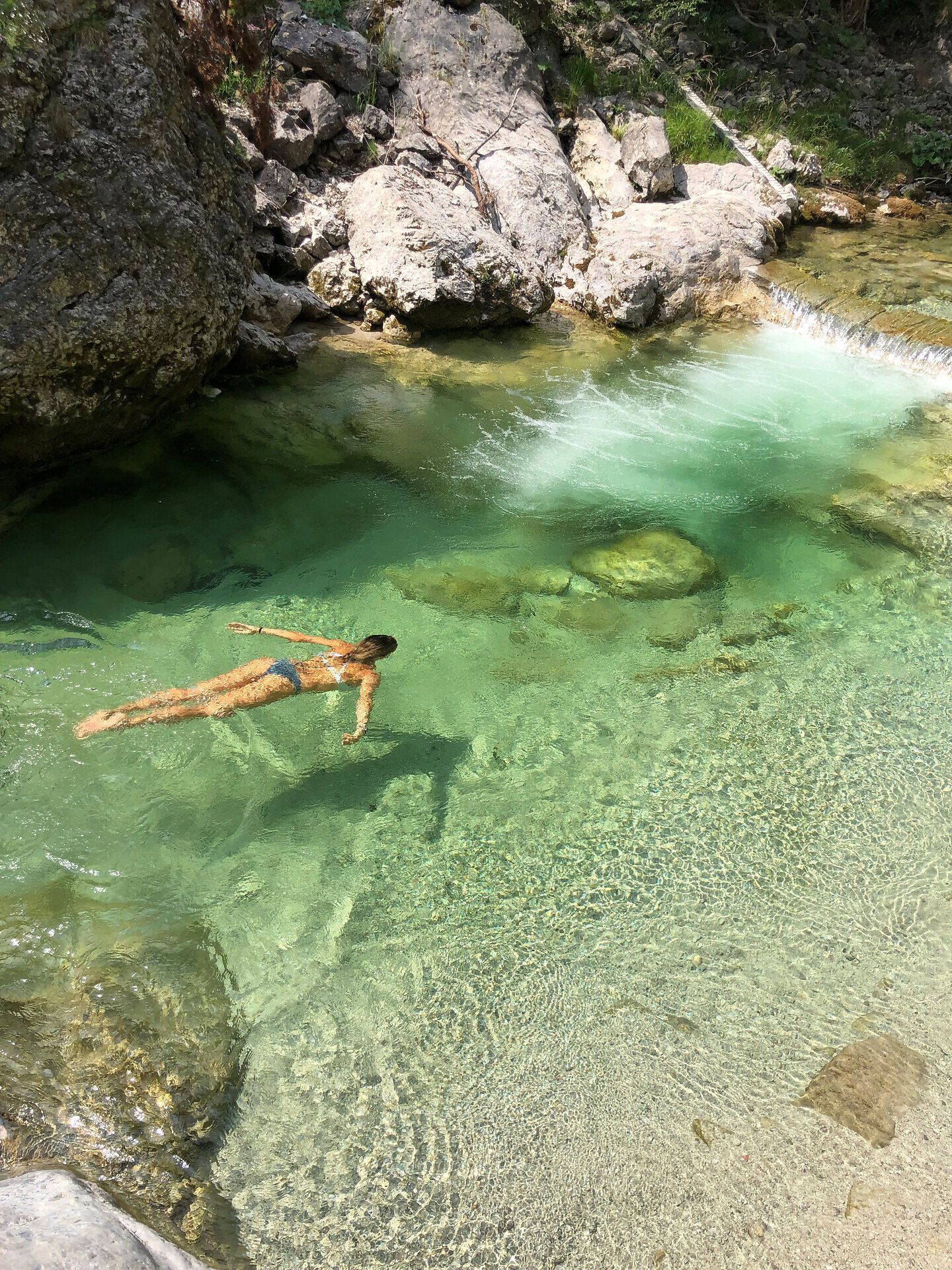Ein kühles Naturjuwel aus Fels und Wald: eiszeitliche Blöcke – blank oder moosgrün – dazwischen türkises, glucksendes Wasser, das immer wieder stille Becken formt. Mehr Schluchtweg als Badeplatz, aber perfekt, um im Hochsommer die Füße zu kühlen – und mit Mut auch ein bisschen mehr.