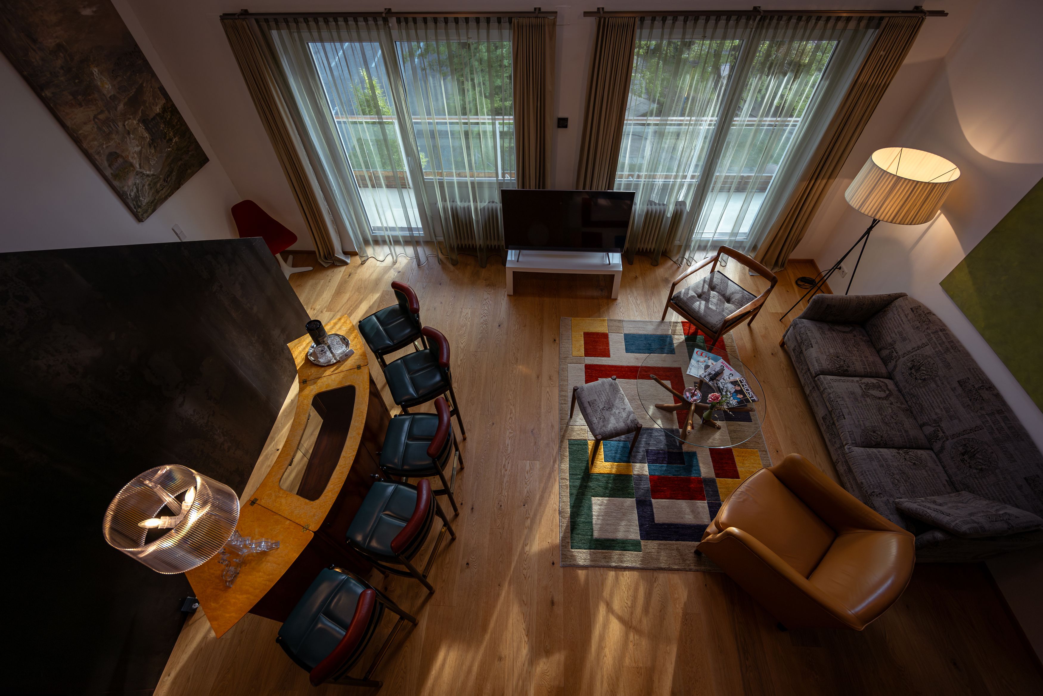 Von der Terrasse aus, mit Blick auf den Kurpark lassen sich die allerschönsten Sonnenuntergänge bewundern. Idealerweise mit einem Gläschen vom hauseigenen „krap Gin“ als Sundowner. Und vielleicht ist auch Mick Jagger genau hier gesessen, als er in den 70ern einmal im Hotel Gast war.