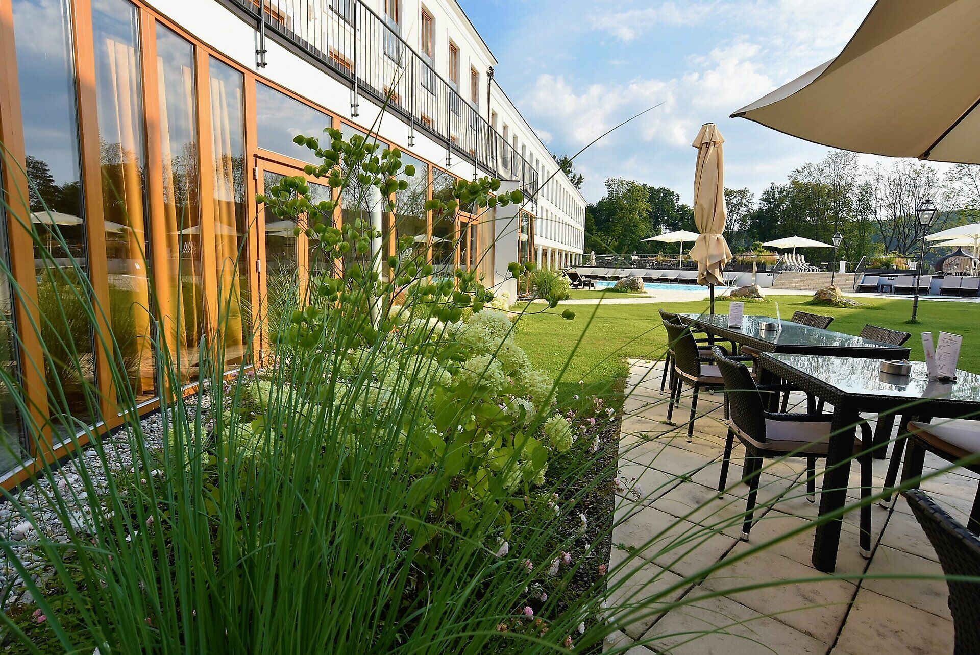Dass es hier so ruhig ist, liegt nicht nur am Adults-Only-Konzept oder am fünf Hektar großen Naturpark rundum. Womöglich spielen auch die Vibes vom ehemaligen Kartäuserkloster eine Rolle, auf dessen Grund das heutige Hotel steht. Oder es ist die klare Architektur mit dem vielen Glas, das gute Essen, das großzügige Spa. Und weil man auch in Bewegung zur Ruhe kommen kann, praktiziert man hier Yoga, geht Waldbaden, spielt Tennis, borgt sich ein E-Bike aus oder macht einfach, wonach einem gerade ist. Selbstverständlich im eigenen Tempo.