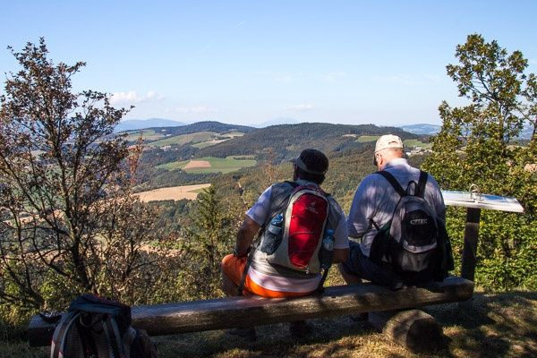 Vom Parkplatz Hutwisch über den Hutwisch (896m) mit seinem beliebten Aussichtsturm geht es den Hügelkuppen entlang bis Kalteneck und zur neu errichteten Aussichtsplattform (mittlerweile liebevoll „Guglhupf“ genannt) bei Redlschlag. Unterstützt von gut beschrifteten Panoramakarten können Sie hier einen Rundblick vom Wechsel über Schneeberg, Bucklige Welt, Neusiedler See, Ungarn bis zur Koralpe und Slowenien genießen. Weiter geht es über einen Steig auf das Steinstückl und anschließend entlang von Waldwegen Richtung Bernstein. In Bernstein sollte man sich unbedingt auch bezüglich der Kunst des Edelserpentinschleifens erkundigen oder das Felsenmuseum besuchen.