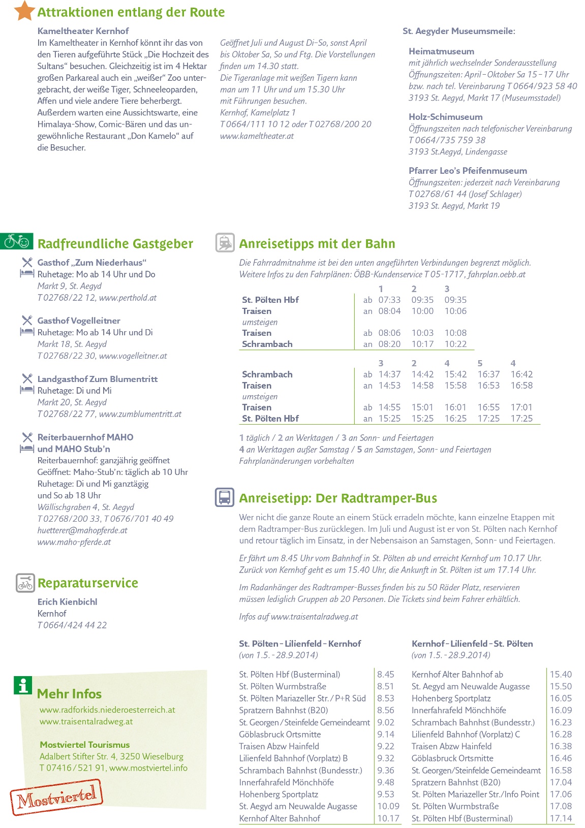 Ganz ungewöhnlich präsentiert sich dieser kurze, sehr familienfreundliche Teilabschnitt des Traisental-Radwegs rund um St. Aegyd. So liegt er mitten in den Bergen, ist aber trotzdem relativ flach. Ihr findet hier viel Natur (der Bezirk ist der waldreichste Österreichs) und trotzdem gute Labstationen und Spielplätze.
