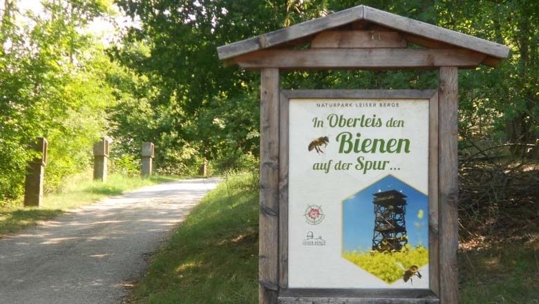 Entlang des Bienenlehrpfades Oberleiserberg wird die Honigbiene als eines der wichtigsten Nutztiere für unser Öko-System präsentiert und der Einfluss auf das Leben des Menschen verdeutlicht.