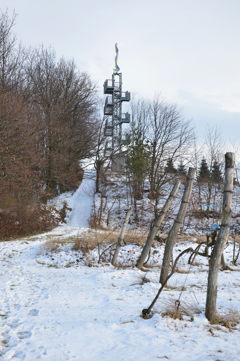 Die Ahrenberger und Eichberger Winzerinnen und Winzer haben an der höchsten Stelle des beliebten Wanderweges Hauersteig eine 15m hohe Aussichtswarte errichtet. Der Korkenzieher, Symbol für Wein, Gemütlichkeit und Genuss, öffnet bezaubernde Aussichten ins weite Land! Der Blick reicht von den Donauauen über das Weinviertel bis ins weite Land Waldviertel. Man sieht vom Tullnerfeld bis ins Kamptal und über den Wienerwald bis zum Schneeberg.