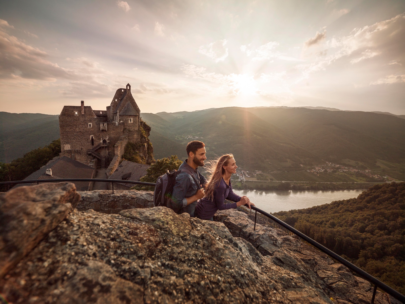 Vielleicht erinnert Sie dieses alte Epos unterwegs daran, welch geschichtsträchtige Landschaft Sie durchmessen. Was übrigens auch prähistorische Funde bei Schönbühel belegen. Diese Ortschaft mit dem anmutigen Schloss am Donauufer durchqueren Sie auf dem Weg nach Aggstein, wo 300 Höhenmeter über der Donau die gleichnamige, sagenumwobene Burgruine (12. Jh.) lockt. Hier hauste einst "Ritter Schreckenwald" (Jörg Schenk), der von den Donauschiffern Maut erpresste. Wer nicht zahlen wollte, musste auf einem balkonartigen Felsvorsprung, dem "Rosengärtlein", verhungern.