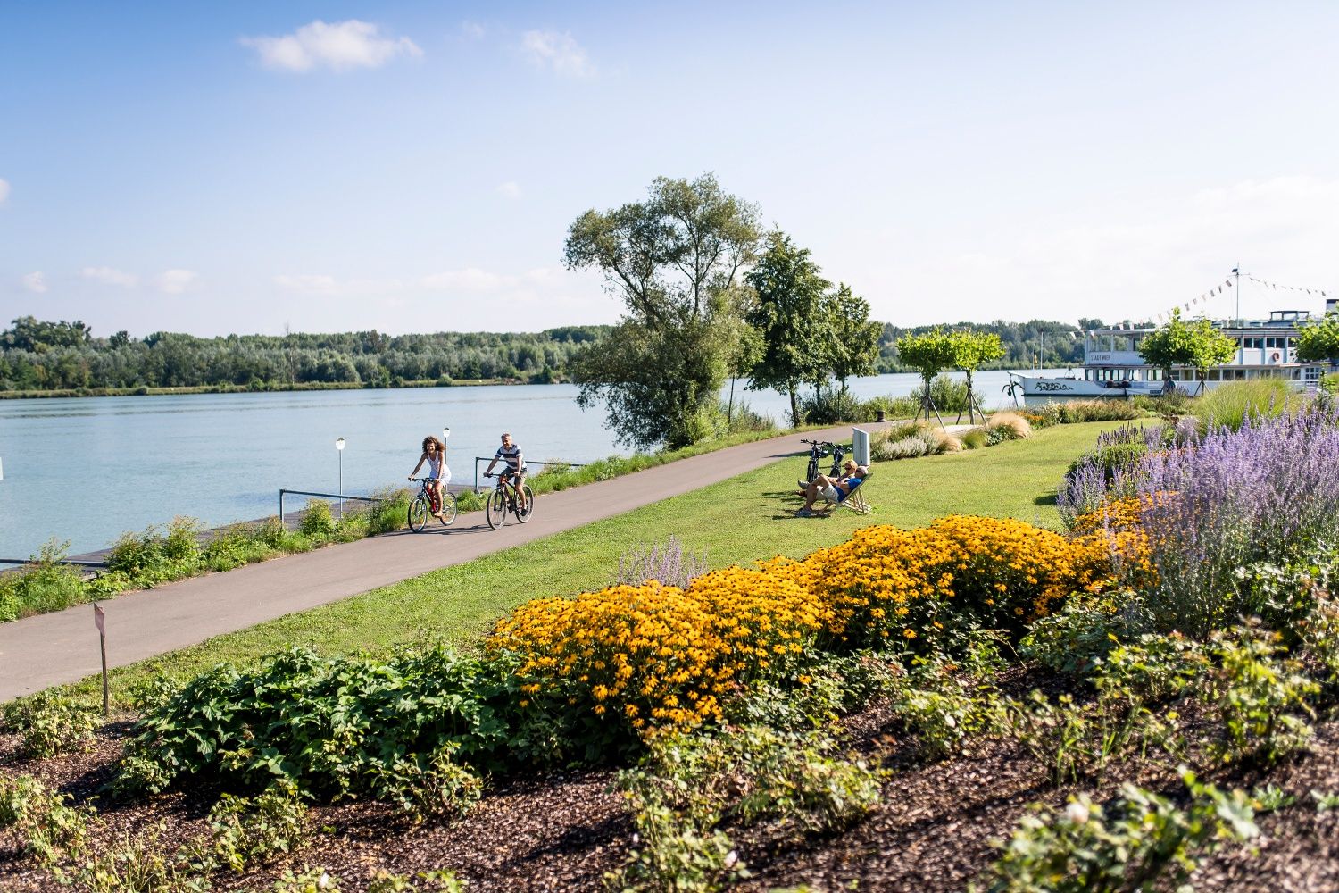 Gartenradtouren – ein stimmiger Begriff, aber was kann man sich darunter vorstellen? Entlang der Sonnenblumen-, Pappel- und Rosentour erleben Radler:innen das Thema Garten im Erlebnisraum Region Tulln auf neue Weise. Neben Gartenerlebnissen, Garten- und Baumkunstwerken finden sich auch viele Schaugärten und Gartenbaubetriebe entlang oder in unmittelbarer Nähe der Strecke. Die Pappeltour startet in der Gartenstadt Tulln und führt zuerst am Donauradweg Richtung Westen und dann am idyllischen Traisentalradweg entlang. Besonders in den Sommermonaten sorgen die Pappeln am Wegesrand für eine willkommene Abkühlung. Besonders der Rad-Rastplatz am St. Andräer Steg lädt die müden Radler:innen zum Verweilen ein.