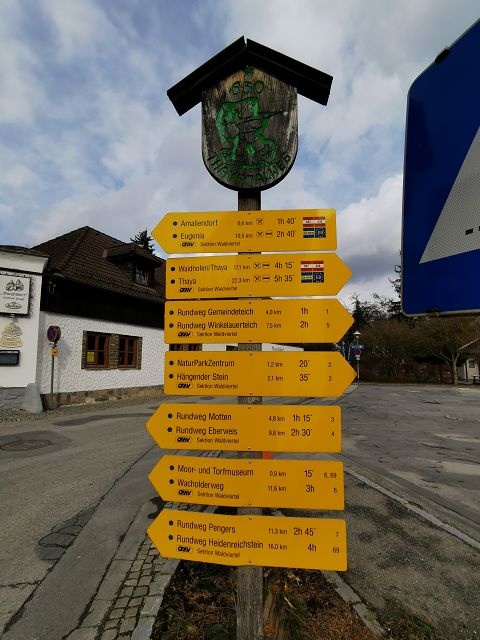 Heidenreichstein Weg Nr.1 – Gemeindeteich Burg Heidenreichstein (Bushaltestelle) – Waidhofener Straße – Waldgasse – Sportgasse –Sportplatz – Gemeindeteich (über Dammweg) – Seyfriedser Straße –Schremser Straße – Burg Heidenreichstein