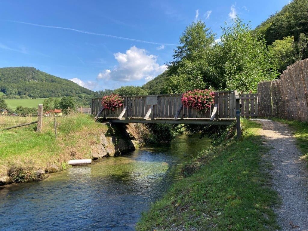 Mitten im Zentrum von Furth befindet sich der erste Hofladen unserer Wanderung. Familie Lechner Kirchenkrenn vertreibt unter der Marke MagMan(Magdalena+Manfred) hauseigene Produkte ihrer Hühner, Rinder und Schweine, sowie Gaumenfreuden aus dem Garten. Nach einem kurzen Stück des Wiener Wallfahrerweges gelangt man beim markanten Kalkfelsen auf die Hauptstraße und kurz nach dem Gasthof zum Furthnerwirt führt der wunderschöne Promenadenweg, immer dem Further Bach entlang, zum nächsten Hofladen der Familie Lechner-Schaupp. Schauppi das KUH’le Eis ist insbesondere für sein selbstgemachtes Eis und Joghurt, aber auch diverse andere Schmankerl bekannt. Wieder über den Promenadenweg und ein kurzes Stück entlang der Hauptstraße zurück, gelangt man abermals zum markanten Kalkfelsen. Hier links einbiegen und nach einem kurzen Stück wieder links über die wunderschöne Brücke der Dorfjugend in den Wald hinein. Von dort wandert man über einen sanften Hügel zum nächsten Bach in Ebeltal. Entlang der Hauptstraße, an der Hubertus Kapelle vorbei, befindet sich der Hofladen im großen Hühnerstall der Familie Schaupp namens „Ebeltaler Köstlichkeiten“. Wohlschmeckende Freilandeier, aber auch hauseigener Eierlikör, selbstgemachte Traktornudeln und viele andere Produkte stehen hier zum Verkauf bereit. Ein kleines Stück die Straße zurück wird ab dem Schild „Ebeltal 2“ die Schotterstraße zum Hof Amöd begangen. Hier erfreut, insbesondere Kinderherzen, der Anblick von Pferden, Ziegen und Hühnern. Von dort gelangt man über Feldwege und Wiesen zurück ins Tal.
