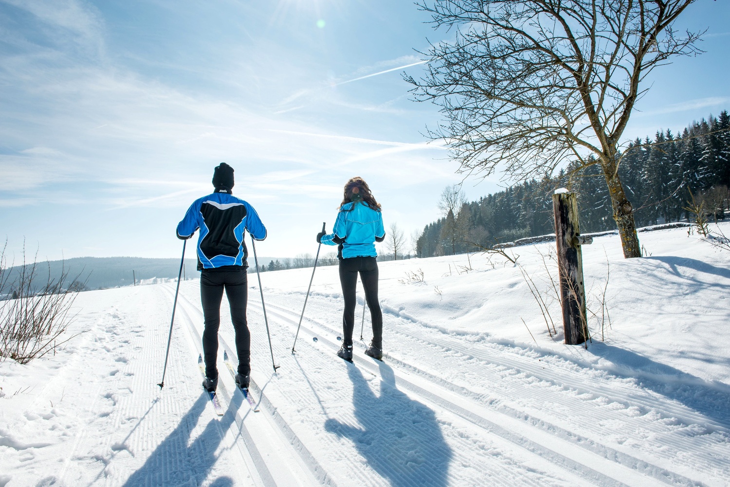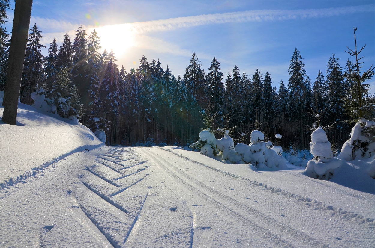Schwierigkeit blau (leicht), Länge 5 km, Höhendifferenz 35 m, Gesamtanstiege 55 m Schneesicherheit: 4 Flocken Verläuft zunächst wie alle Loipen vom Start über die Ortswiese, überquert die Straße und nach 200m erreicht man den Wald. Nordseitig gelegen, teilweise offener Buchenwald, leichtes Gefälle, zwei kurze Anstiege.