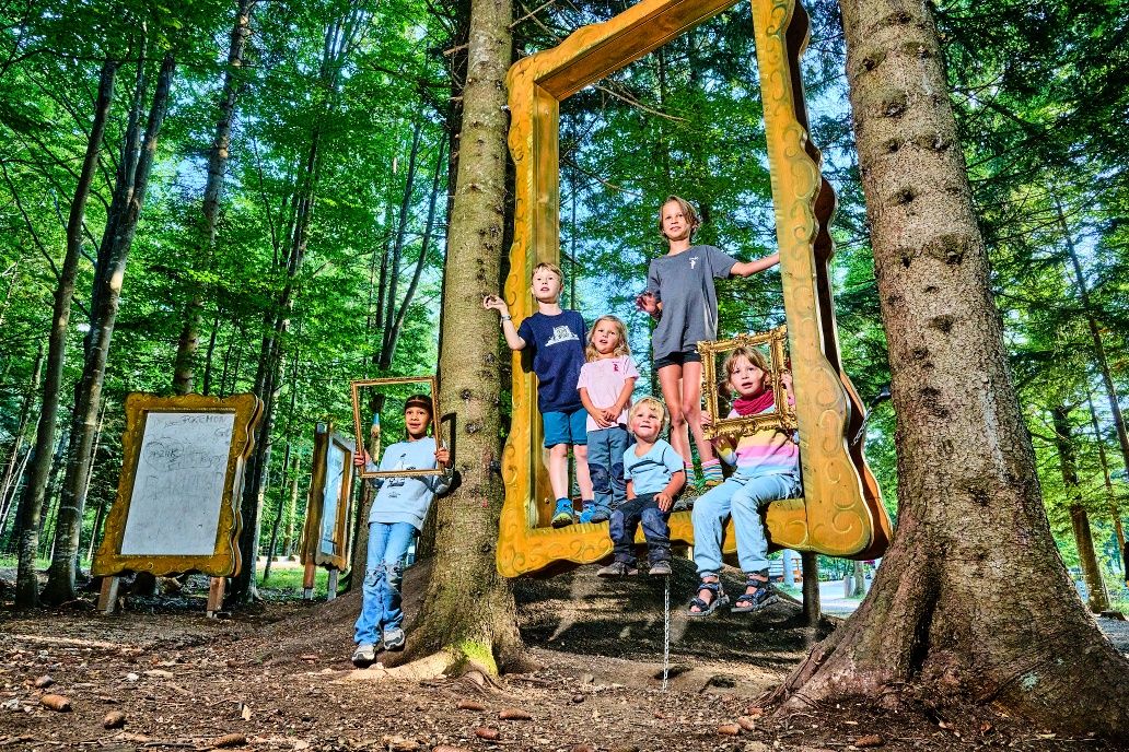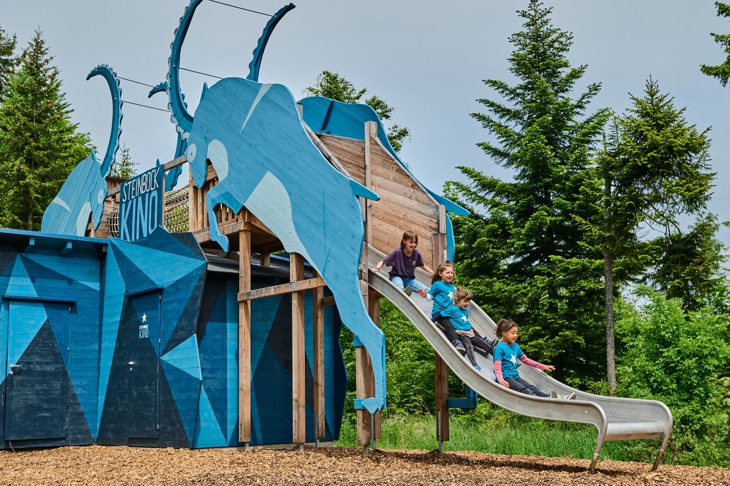 Sie lesen in überlebensgroßen Büchern, zeichnen mit echter Kohle auf hohen Bilderwänden und entdecken die Spuren der Tiere. Eine Schatzkarte führt sie in das verzweigte Tierspurlabyrinth, zum magischen Drachenplatz, auf den hohen Fledermausberg und in die tiefen Murmelhöhlen. Schmetterlingsbänke, Riesen-Eier und Waldnester lassen euch in tierische Rollen schlüpfen.