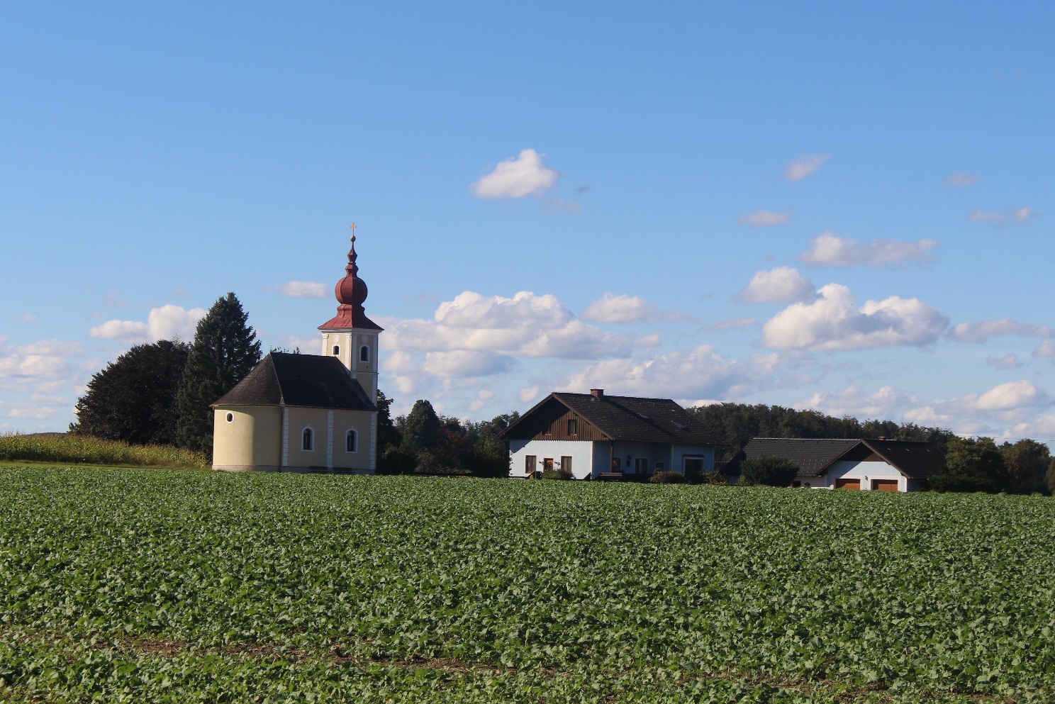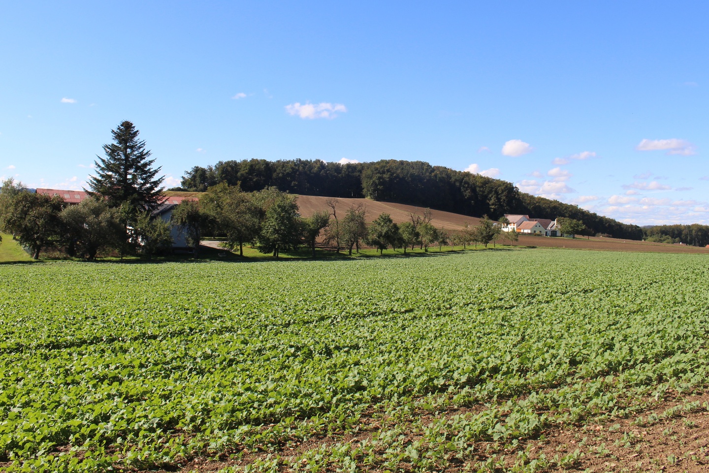 ÖKO-Dorf-Weg mit der Br. 01, durchgehend mit gelben Taferl gut ausgeschildert weist eine Streckenlänge von ca. 11 km auf, die Zeit die dafür benötigt wird sind etwas 3:30 Stunden, an Höhenmeter begrauf sind 120 zu bewältigen, bergab an die 130 hm. 3,5 km von der Strecke sind eher flach, 3,8 km führen bergauf und 3,6 km bergab.