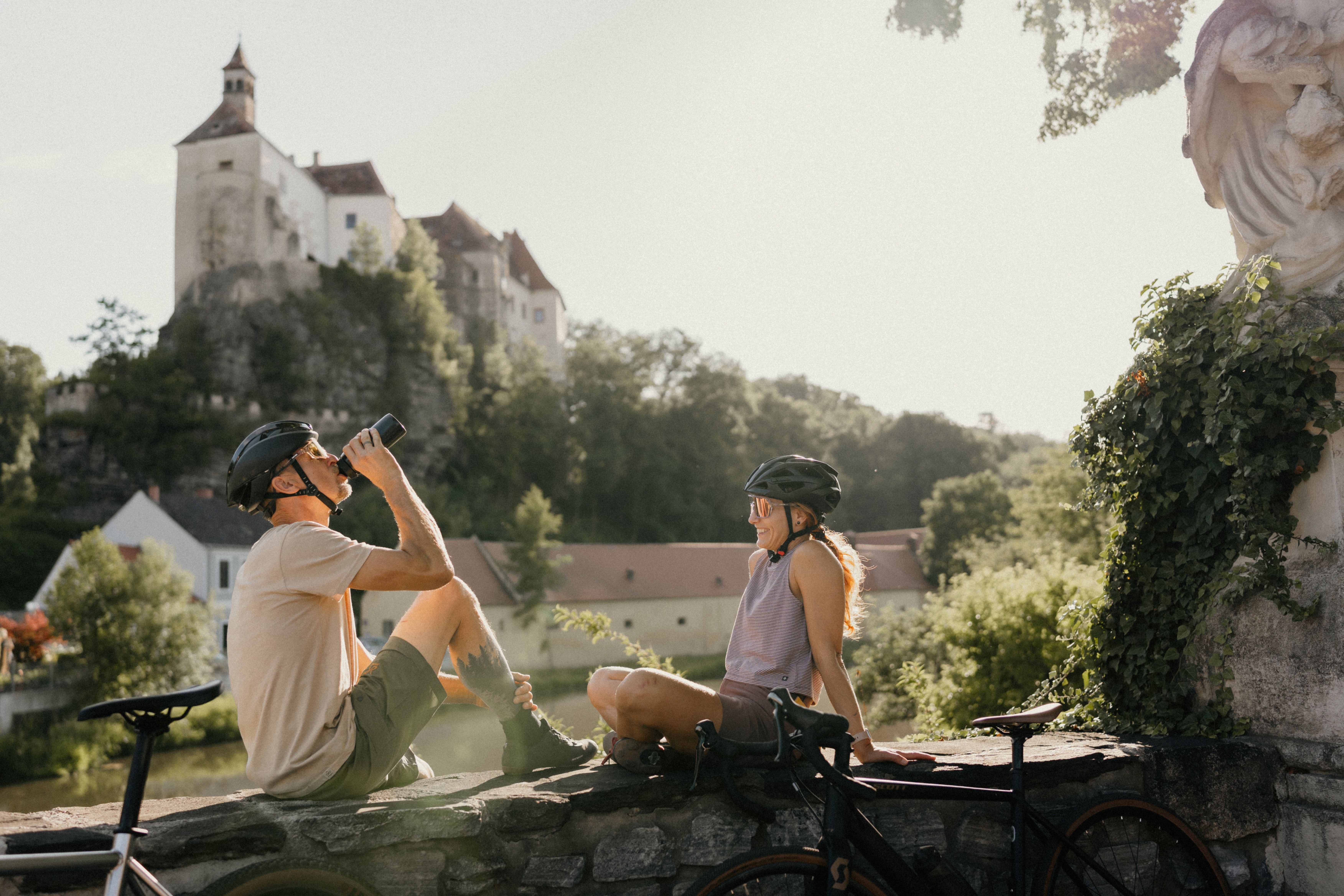 Die Strecke startet in Karlstein an der Thaya mit Burg und Schloss und führt Sie von dort zu den Ruinen des Thayalandes. Als nächstes erreichen Sie die Ruine Buchenstein bei Liebnitz, wo Sie im Hotel Liebnitzmühle kulinarische Schmankerl genießen können. Anschließend radeln Sie weiter zur Ausgrabung Sand, um bald darauf zur größten Ruinenanlage der Region, der Ruine Kollmitz, mit großartiger Aussicht weit über die Region hinaus, zu kommem. Voll Energie fahren Sie weiter nach Weikertschlag mit Ortsmuseum und Flussbad. Über Wetzlas kommen Sie dann zurück nach Karlstein.