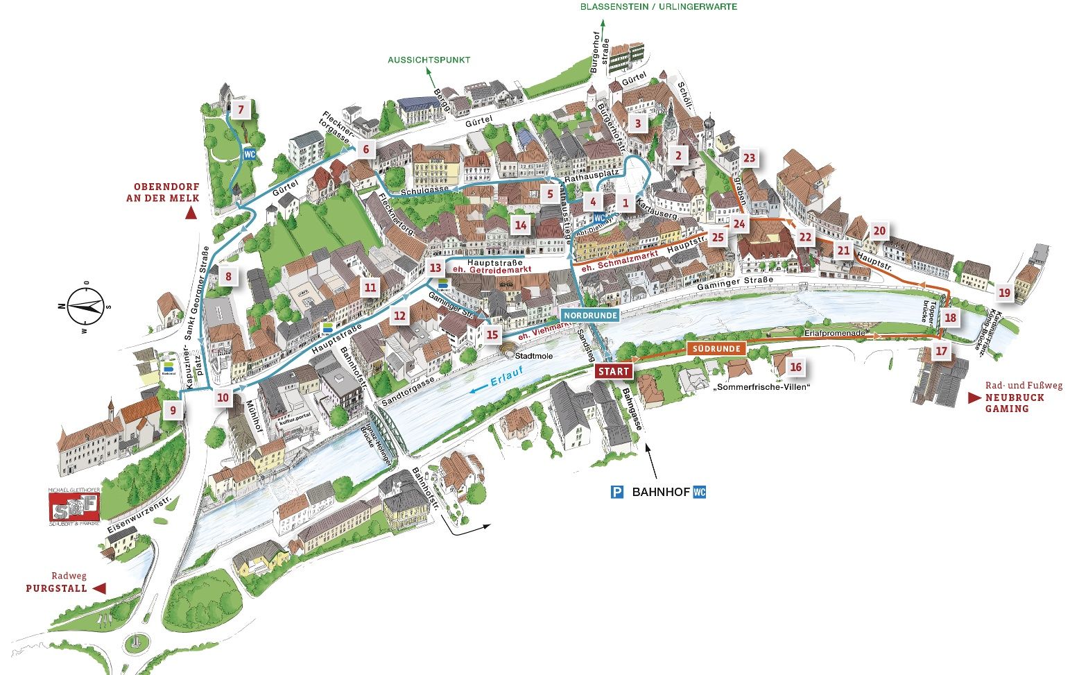 Details zur Südrunde entlang der Erlauf und dann in die Altstadt