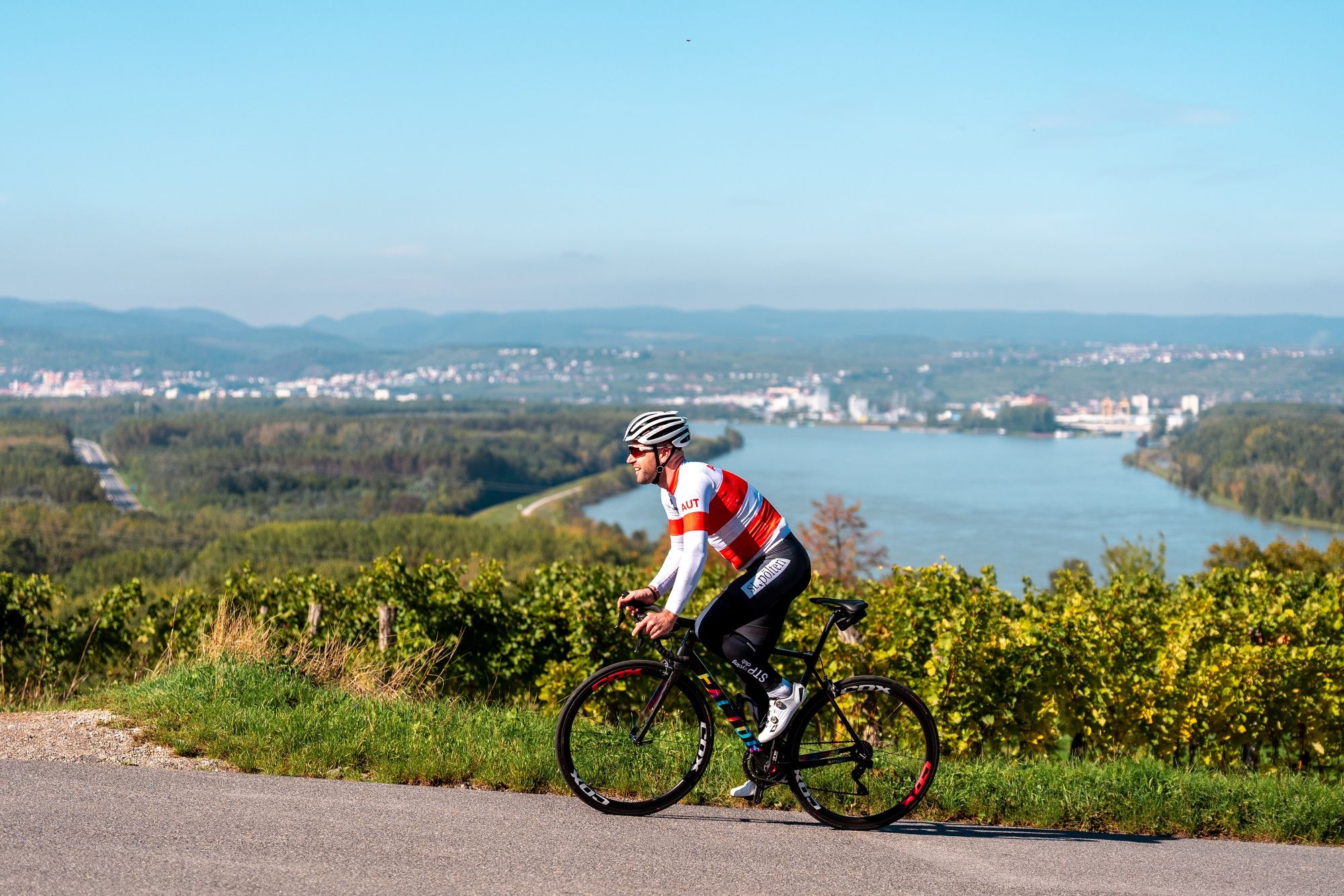 Die 94 Kilometer lange Route mit 910 Höhenmetern führt durch einige der schönsten Landschaften Niederösterreichs und wurde von Triathlon-Teilnehmern bereits mehrfach als schönste Radstrecke prämiert. Von St. Pölten aus geht es vorbei am Ratzersdorfer See Richtung Traisental-Region. In Krustetten wartet der erste Anstieg mit wunderschönem Ausblick auf das Stift Göttweig. Ab hier eröffnet sich auch die malerische Wachau, ein UNESCO-Weltkulturerbe, mit ihren beeindruckenden Weinbergen und historischen Orten wie Rossatzbach, Spitz und Weißenkirchen. Im letzten Drittel wartet der Dunkelsteinerwald mit seinem anspruchsvollen, schattigen, aber dennoch schweißtreibenden Anstieg auf den Gansbacher. Die Strecke weicht zu Beginn von der Original-Triathlonroute ab, da die abgesperrte Autobahn S33 nicht befahren werden kann – dennoch bietet sie ein unvergleichliches Fahrerlebnis voller sportlicher Herausforderungen und landschaftlicher Höhepunkte.