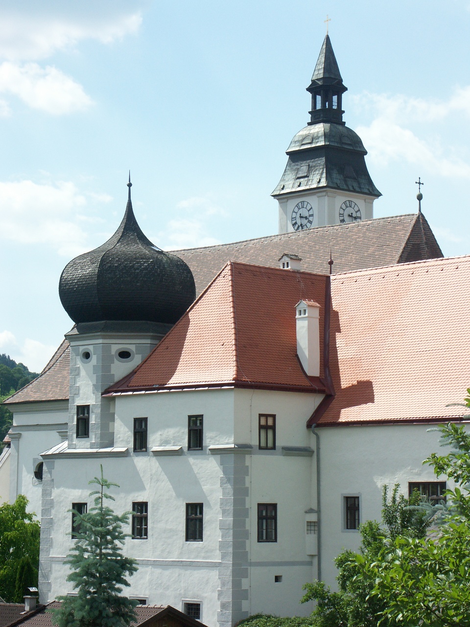 Den Start- und Endpunkt des Themenweges bildet das Schloss Scheibbs. Wir nehmen uns kurz Zeit und besichtigen den wunderschön begrünten Arkadeninnenhof des Schlosses und den imposanten "Dom des Erlauftals", die Stadtpfarrkirche Scheibbs. Anschließend queren wir den Platz Richtung Rathaus. Von hier aus steigen wir die Rathausstiege hinab, queren erst die Hauptstraße und anschließend die Erlauf über den sogenannten Sandsteg. Einen Moment halten wir inne und lassen das Flair der Altstadt am Fluss auf uns wirken. Voller Tatendrang geht’s nun stadtauswärts. Entlang der Erlaufpromenade mit ihrer beeindruckenden Kastanienallee spazieren wir vorbei am Witwensitz von Töppers zweiter Frau Amalie, dem Haus Erlaufpromande 30, und der nebenan liegenden Töpperbrücke, die der Hammerherr als Verbindung zu seiner Liegenschaft am linken Erlaufufer errichten ließ. Wir folgen der Erlauf immer flussaufwärts. An diesem beliebten Spazierweg der Scheibbser laden viele gemütliche Bänke zu einer kurzen Rast an der Erlauf ein. Nachdem wir unseren Weg über die Strudenzeile in Richtung Neustift fortsetzen, finden wir uns auf der berühmten Dreimärktestraße wieder, die die Märkte Scheibbs, Purgstall und Gresten in der Hochblüte der Eisen- und Provianthandelszeit als Verbindung nach Innerberg, dem heutigen Eisenerz, errichten ließen. Nach kurzer Zeit lockt bereits das Gasthaus Buchebner "Zum Steinbruchwirt", wo wir im schattigen Gastgarten eine kühle Erfrischung genießen um unseren Weg anschließend vorbei am ehemaligen Tuffsteinbruch, aus dessen Material viele Kapellen, Mauern und Gebäude die wir passieren errichtet wurden, weiterführt. Wir folgen nun ein gutes Stück dieser ehemaligen Handelsstraße, die bei Neubruck in die heutige B25 mündet. Um unsere Entdeckungsreise auf den Spuren von Andreas Töpper fortführen zu können, müssen wir sowohl die B25 als auch die aus St. Anton/J. kommende B28 überqueren, denn der Rückweg nach Scheibbs führt entlang den Berghängen rechts der Erlauf. Zuvor jedoch planen wir einen Aufenthalt beim imposanten Töpperschloss Neubruck ein, das anlässlich der Landesausstellung 2015 "ÖTSCHER:REICH - Die Alpen und wir" aufwändig renoviert und revitalisiert wurde. Gut erholt treten wir nun den Rückweg entlang des Verlaufs der II. Wiener Hochquellenleitung an. Der Einstieg des beschilderten Teils des Themenweges befindet sich außerhalb des Schloss- und Fabriksgeländes am Zusammenfluss von Erlauf und Jeßnitz (beim EVN-Häuschen). Wir folgen einer gut ausgebauten Forststraße bis hinauf zur Anhöhe "Anslöd" wo wir die riesigen, sanften Hochlandrinder des Grundbesitzers beim Grasen beobachten können. Dieser kurze und leicht zu überwindende Anstieg wird der einzige auf unserem Weg bleiben. Nach einer kurzen Pause an diesem Aussichtspunkt und setzen unseren Weg anschließend über Hochbruck fort. Erst queren wir eine Wiese, dann mündet die Route als schmaler Wanderweg in einen Mischwald und führt oberhalb von Schloss Lehenhof vorbei bis zur Burgerhofsiedlung über Scheibbs. Hier beginnt das letzte Teilstück unserer Runde, die über die Burgerhofstraße im Siedlungsgebiet zurück zum Schloss Scheibbs führt. Ein Abstecher zur Jelinekwarte auf der Rudolfshöhe (524m) wird mit der Aussicht über Scheibbs und die Ausläufer der Voralpen in Richtung Donau belohnt.