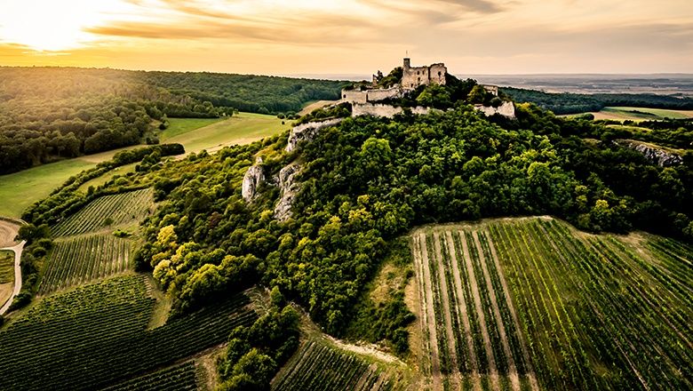 Der kleine Weinort Falkenstein ist seit jeher eminent vom Wein geprägt. Die spektakulären Weinberglagen, die alles überragende Burgruine, deren Urversion im 11. Jahrhundert begonnen wurde, die malerische Kellergasse, auf der gut und gerne 50 Presshäuser stehen, aber auch eine Vielzahl an Bildstöcken, Statuen und kleinen Kapellen bieten eine wunderbare Wanderkulisse.