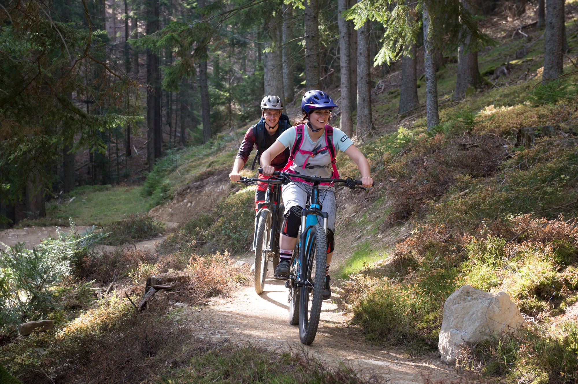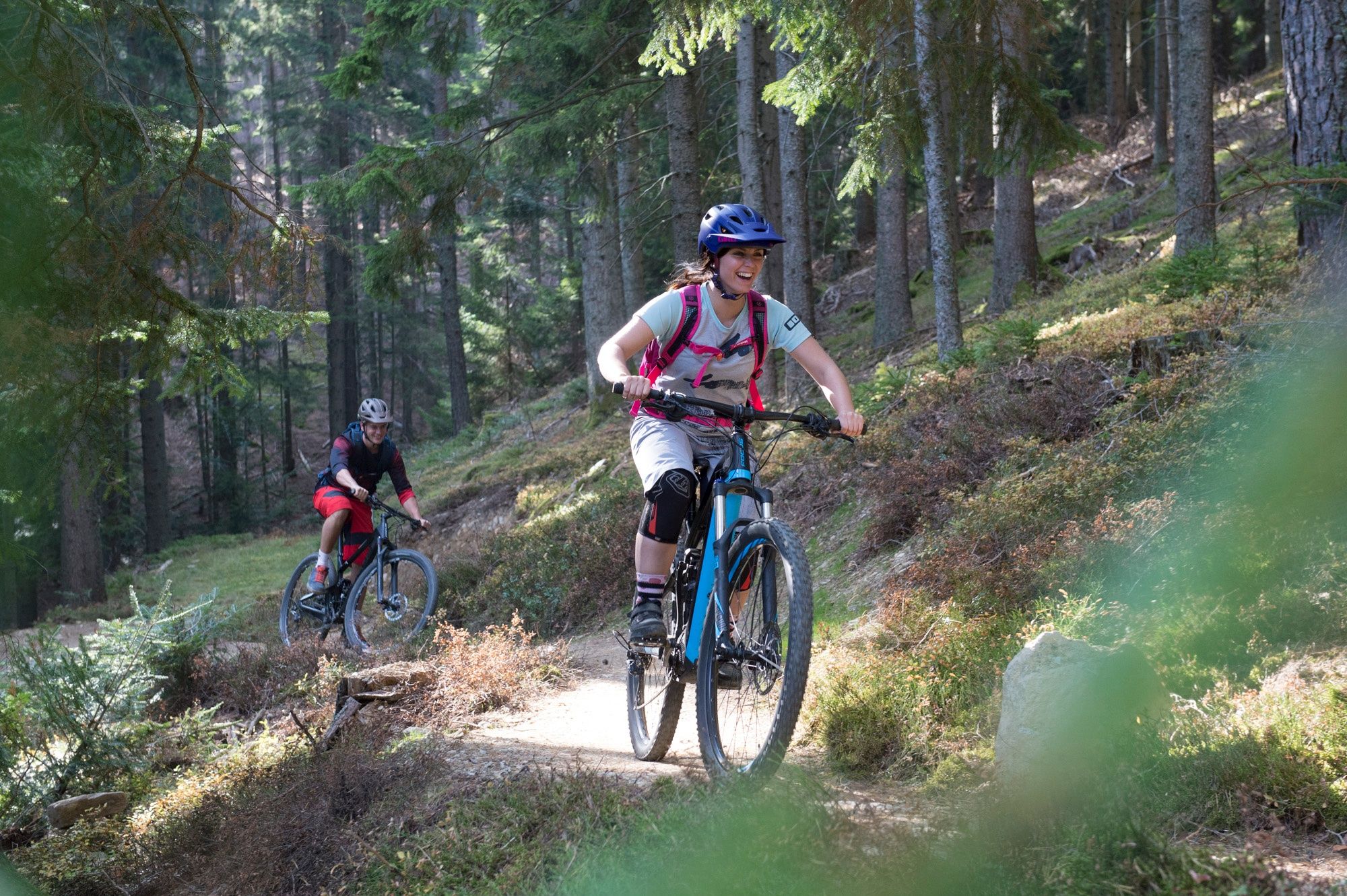 5,3 Kilometer bergauf fast ohne Wurzeln oder Steine, perfekt für E-Mountainbiker, Anfänger und Kinder.
