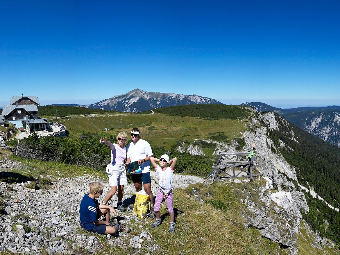 Die 12. Etappe des Weges am Wiener Alpenbogen (WAB) wird begleitet von alpinem Rasen, Latschen und schroffem, gleichzeitig sicherem Gelände. Eine herrliche Plateuwanderung mit moderaten Auf- und Abstiegen. Der Weg ins Tal lässt sich mit der Rax-Seilbahn verkürzen.  HINWEIS: Bitte erkundigen Sie sich vor Ihrem Tourenstart hier bezüglich der aktuellen Öffnungszeiten des Habsburghauses!