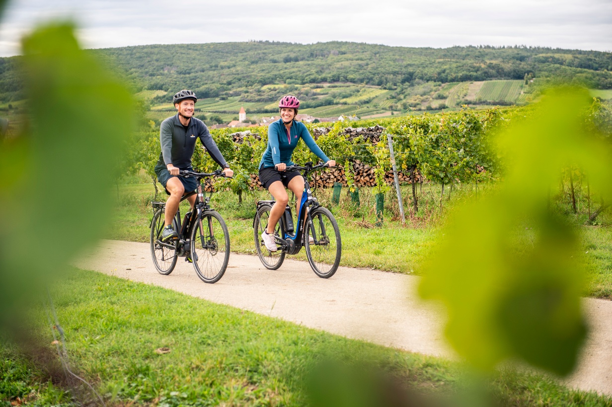 Über sanfte Hügel, vorbei an malerischen Weingärten und durch das reizvolle Pulkautal. Genießen Sie das einmalige Ambiente der zahlreichen Kellergassen am Weg und lassen Sie sich von der Welt des Weines verzaubern.
