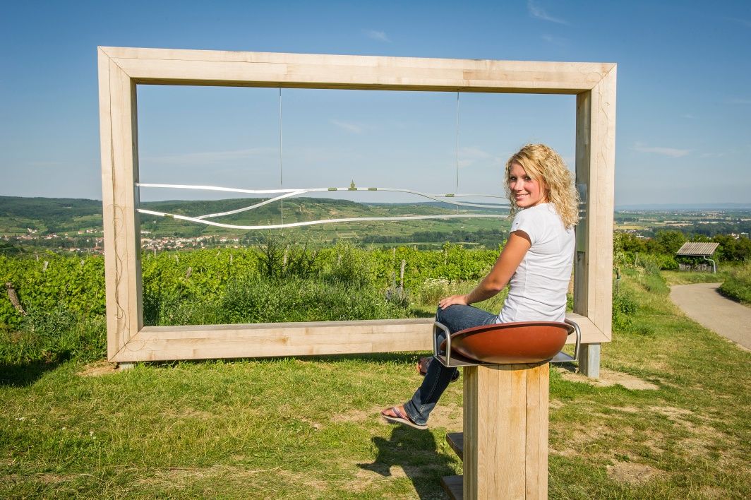 Unterstützt werden die Weinbauthemen durch teils spektakuläre Objekte und Skulpturen: so bohrt sich ein meterlanger Regenwurm durch den Weingarten und begleitet das Thema Bodenbearbeitung, aus einem Riesen-Sektrüttelpult wird eine Aussichtsplattform, eine Schaukel lädt zur Wetterbeobachtung ein u. v. m.