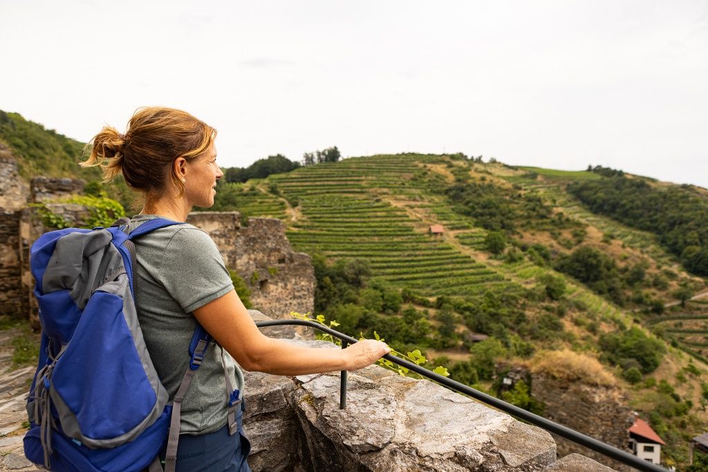 Auf insgesamt 98,4 Kilometern verläuft der vielseitige Weitwanderweg Kremstal-Donau zwischen Wachau und Kamptal. Entlang der malerischen Route verbindet sich idyllische Natur mit feinster Kulinarik und regionaler Kultur, gekrönt von zahlreichen Ausflugszielen. Vom prächtigen Stift Göttweig über die Ruine Senftenberg bis hin zu Weinerlebniswelten und Waldlehrpfaden – die Wanderung hat allerhand interessante Highlights zu bieten.