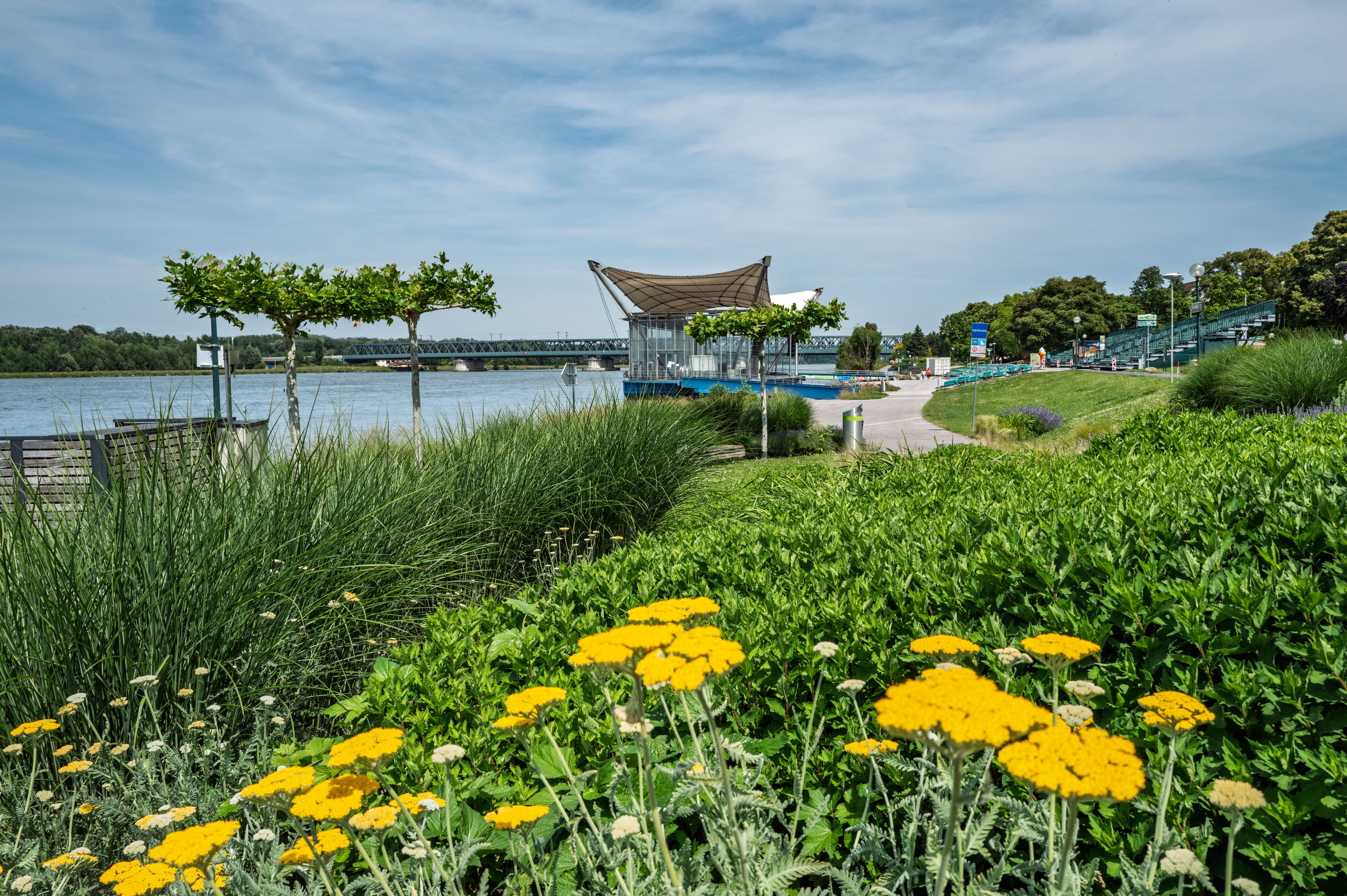 Hoch über die Wipfel alter Baumriesen geht es auf der GARTEN TULLN: Der vom Architekten Ernst Maurer entworfene, 30 Meter hohe Baumwipfelweg besteht aus einem Aussichtsturm mit mehreren Ebenen, Stiegenläufen und Podesten und ist zu Fuß als auch barrierefrei via Aufzug zu besichtigen. Man überblickt man von ganz oben nicht nur die 70 Mustergärten der GARTEN TULLN, auch Tulln selbst, das Tullnerfeld und bis hinein in den Wienerwald und zur Donau. Bei guter Wetterlage kann man sogar Schneeberg und Ötscher sehen! Schautafeln präsentieren die wichtigsten Au-Bäume und Gartenvögel, die alle auf der GARTEN TULLN heimisch sind.