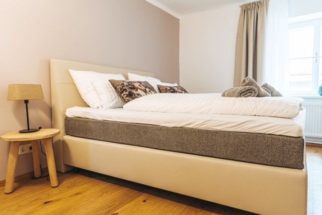 Das Apartment bietet eine eigene Wohneinheit mit etwa 75 m2 für bis zu vier Personen. In unmittelbarer Nähe befinden sich charmante Cafés, Restaurants, Weinlokale und eine Bäckerei. Die neu und modern sanierten Gewölberäume im ersten Stock des Hauses verleihen dem Apartment ein besonderes Flair und machen es zu einem idealen Ausgangspunkt für die Erkundung der Stadt.