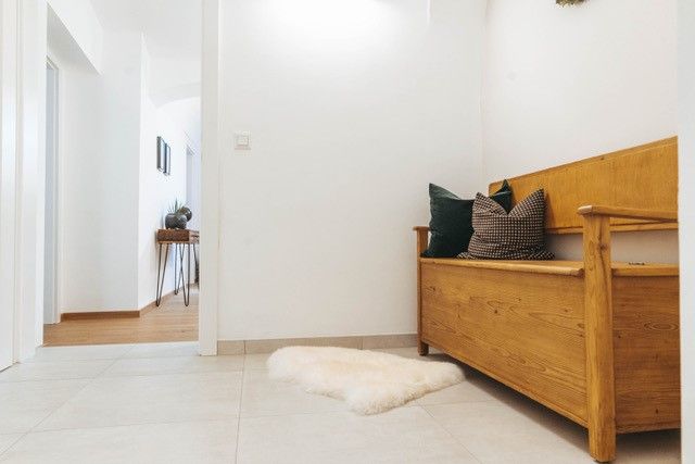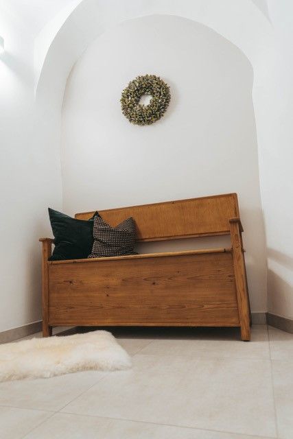 Ein Vorraum mit renovierten Rundbögen und gemütlicher Sitzgelegenheit lädt zum Verweilen ein. Von hier gelangt man in die beiden Schlafzimmer, neben den Kingsize Boxspringbetten bietet jedes einen Smart-TV und eine nette Sitzecke.
