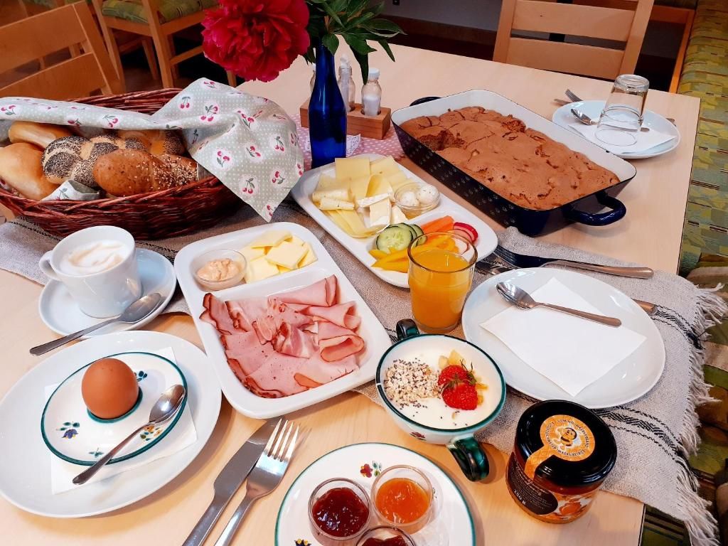 Jeden Morgen wird auf Wunsch ein Buffetfrühstück (kontinental oder vegetarisch) angeboten. Alternativ können Gäste den Bäckerservice der Lunzferien nutzen – ideal für Selbstversorger.