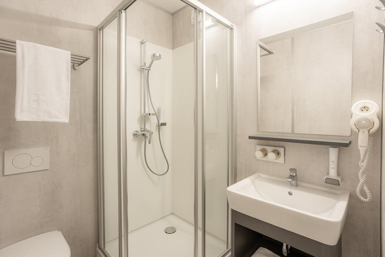 - Dusche/WC, Haarföhn/Duschgel/Shampoo