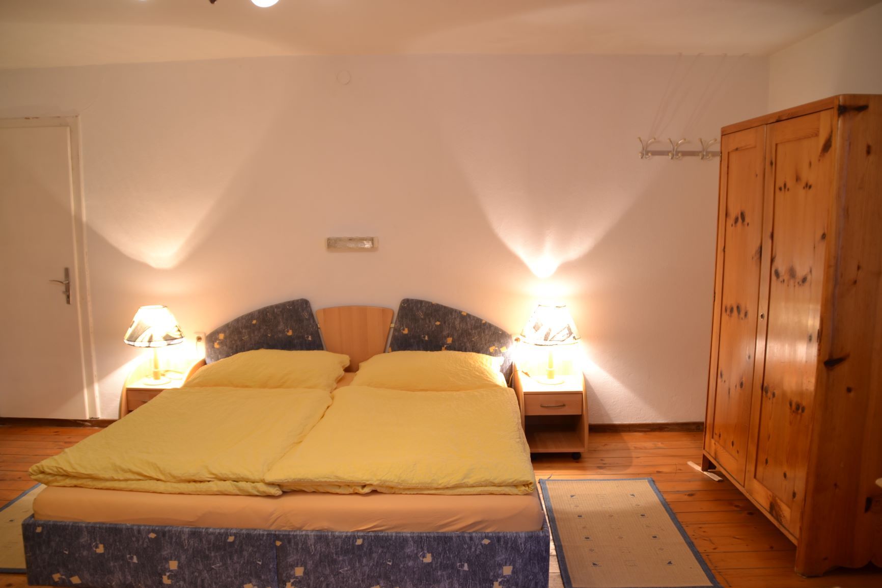 Obergeschoß: Doppelzimmer, Einbettzimmer mit Waschbecken (Durchgang durch das Doppelzimmer), Balkon.